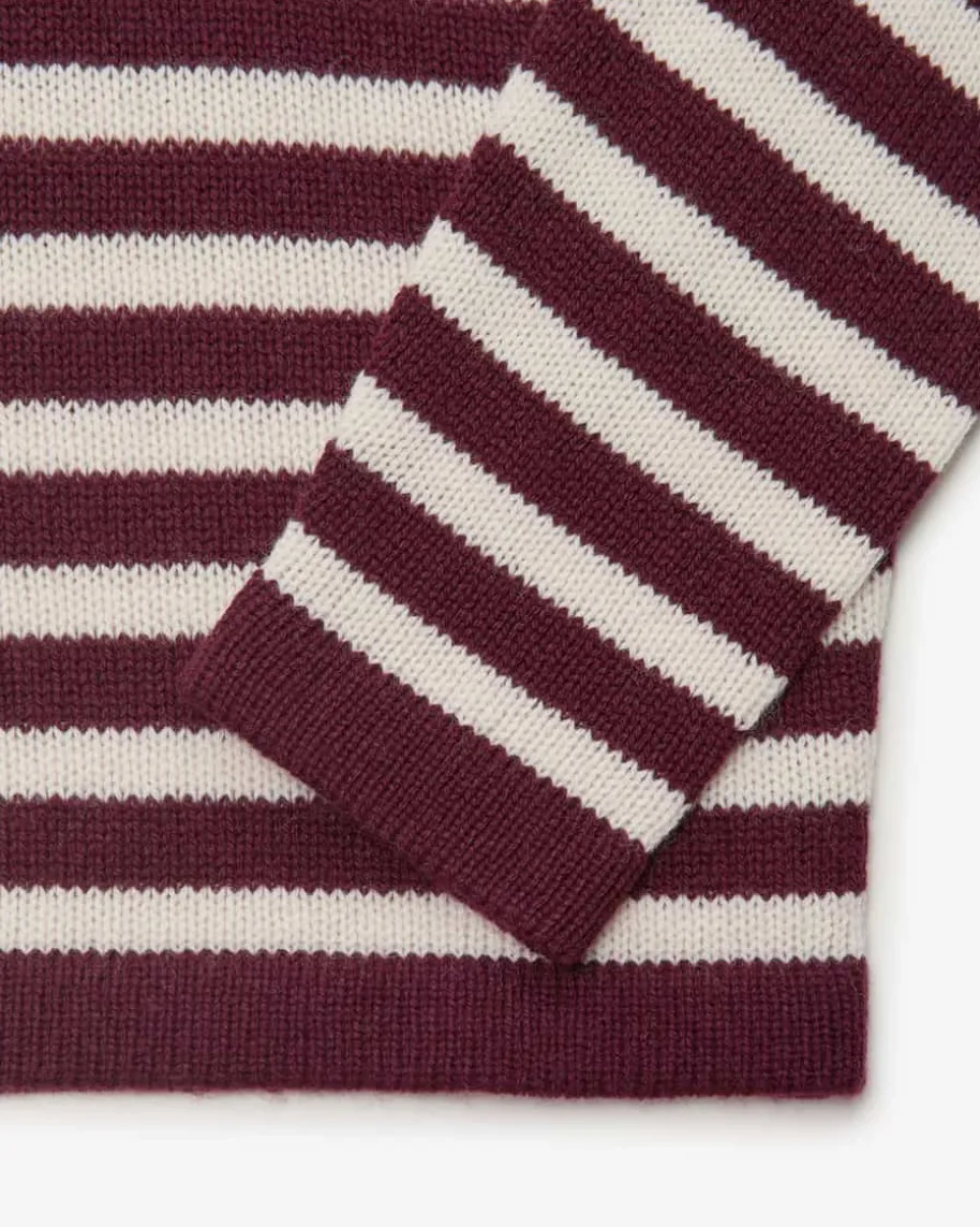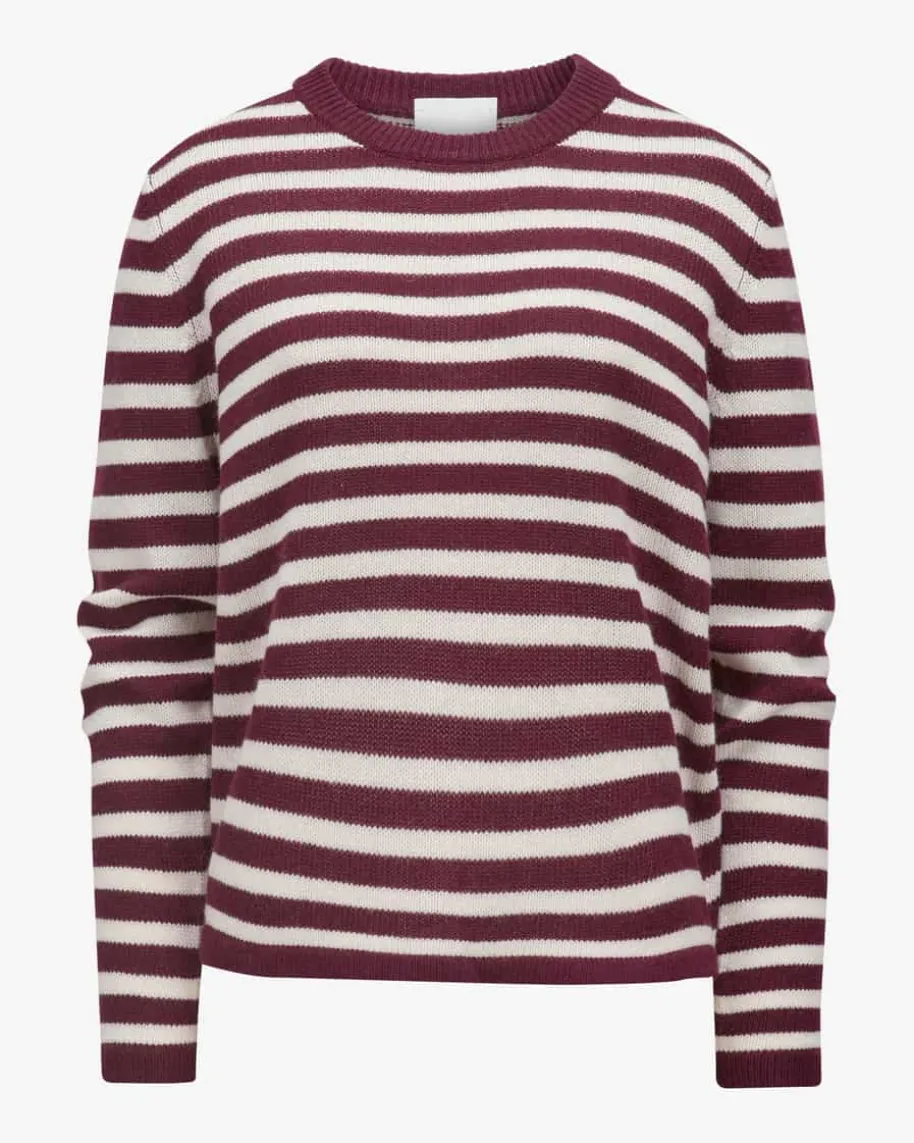 Pullover für Damen von Allude in Bordeaux und Weiß. Das Münchner UnternehmenAllude steht für Mode, die Selbstbewusstsein und zeitlose Individualitätausstrahlt. Gefertigt aus hochwertigem Schurwoll-Cashmere-Mix, besticht dasModell mit besonders weichem Griff und Streifen-Dessin. Klassische Detailsrunden den ansonsten cleanen Style feminin ab.