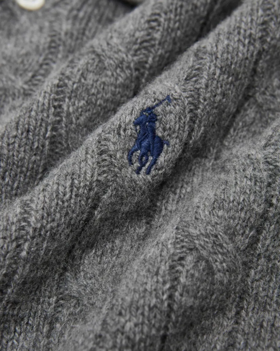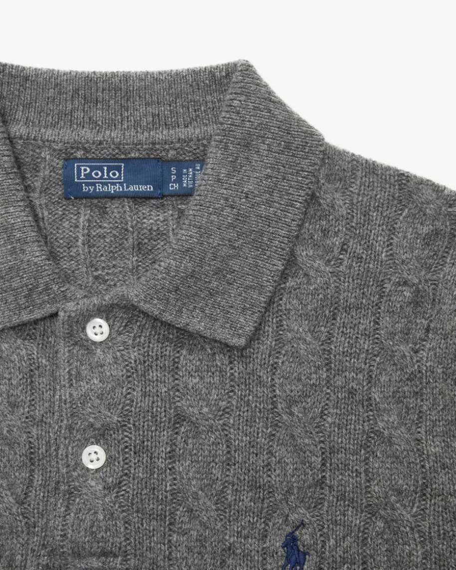 Pullover für Damen von Polo Ralph Lauren in Dunkelgrau. Qualität, Lifestyle,Authentizität und zeitlose Eleganz – all das zeichnet die Marke Polo RalphLauren seit nunmehr 50 Jahren Firmengeschichte aus. Das schmale Modellpräsentiert sich dank dem angenehmen Woll-Cashmere-Mix als zeitloser Favorit,während das moderne Zopfstrick-Dessin zusammen mit dem Polokragen den Looksportiv vollenden.