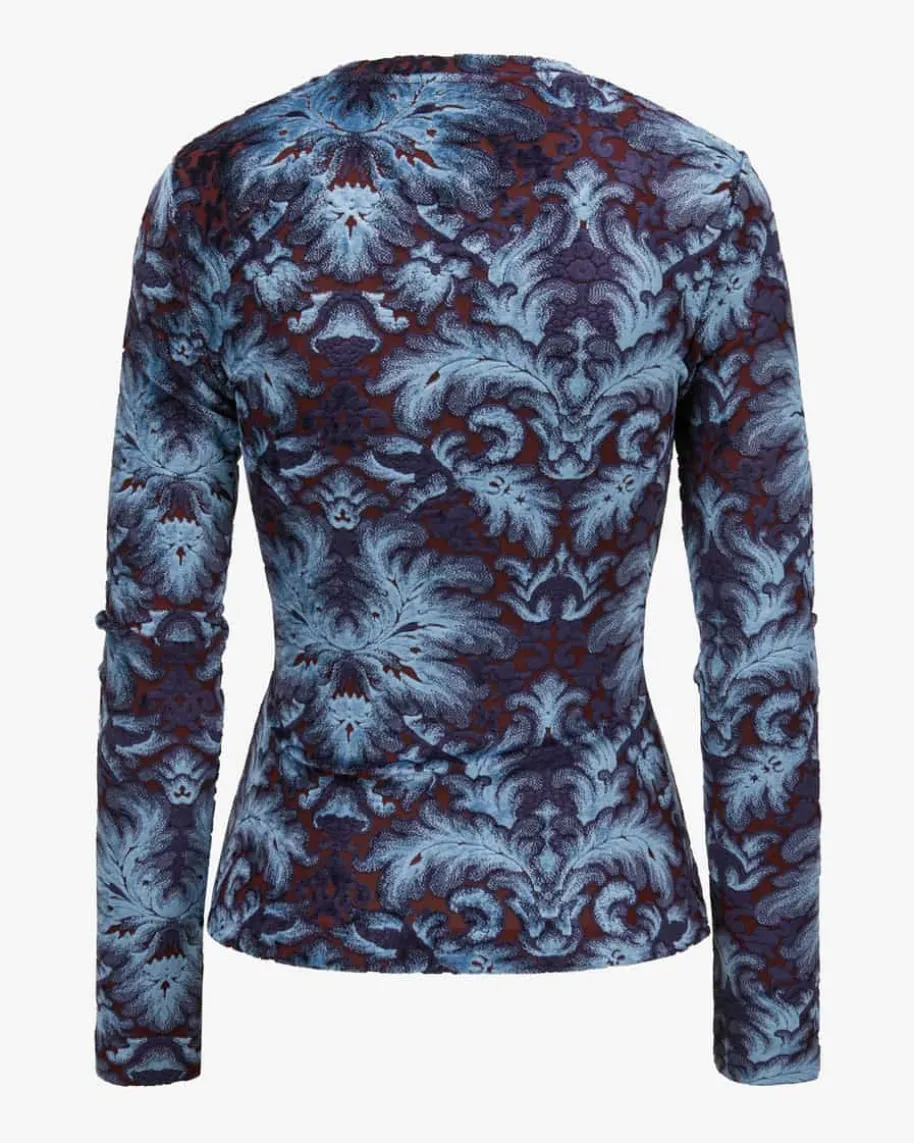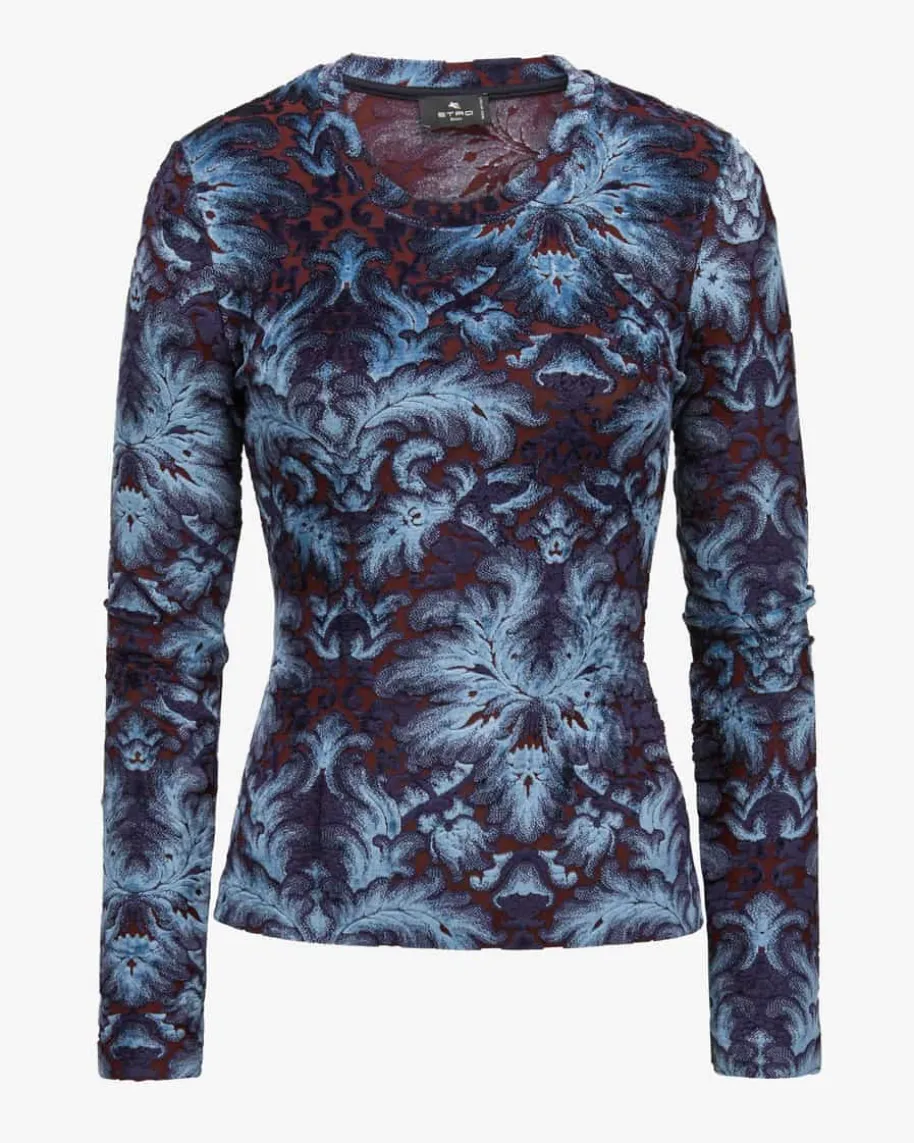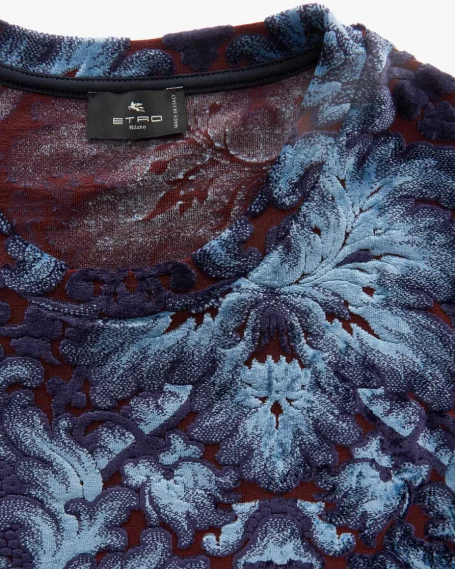 Pullover für Damen von Etro in Blau und Bordeaux. Das Modell präsentiert sichdank der schmalen Schnittführung als femininer Favorit, während der Besatz inSamt-Qualität optische sowie haptische Highlights setzt.