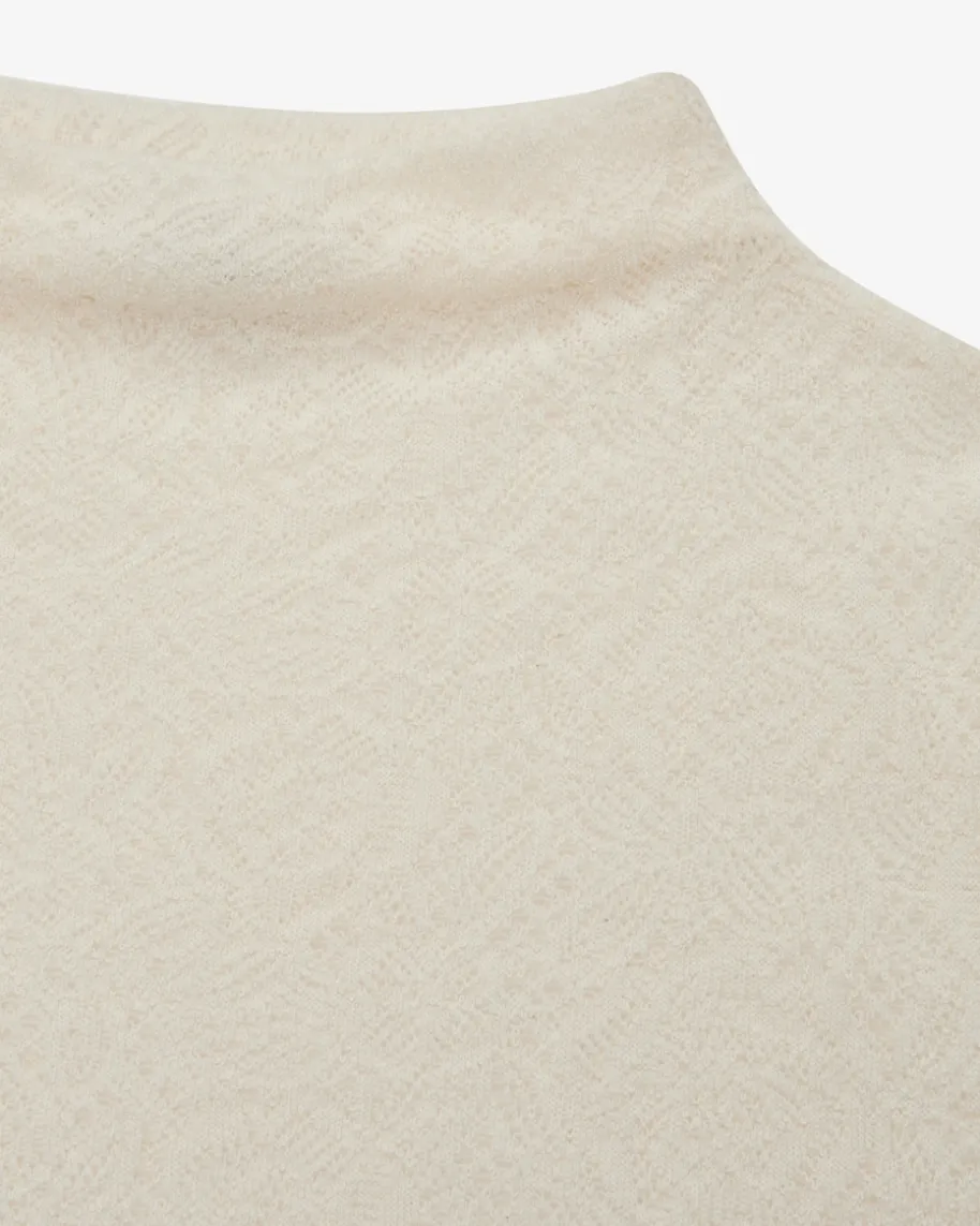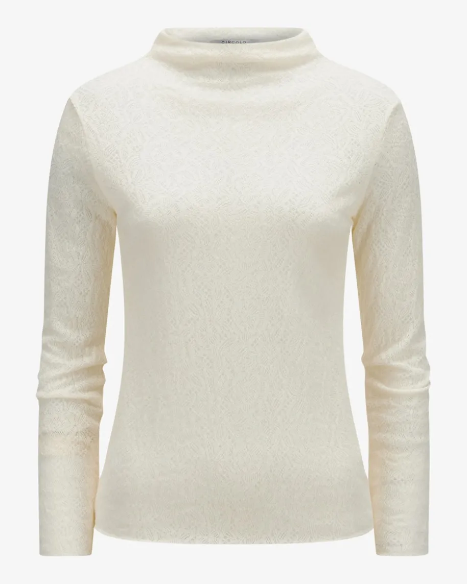 Pullover für Damen von Circolo 1901 in Creme. Ein femininer Strick-Favorit –Während das semi-transparente Design aus hochwertigem Schurwoll-Mix für eineleichte Haptik sowie besondere Optik sorgt, verleiht der umgeschlageneStehkragen den letzten Schliff.