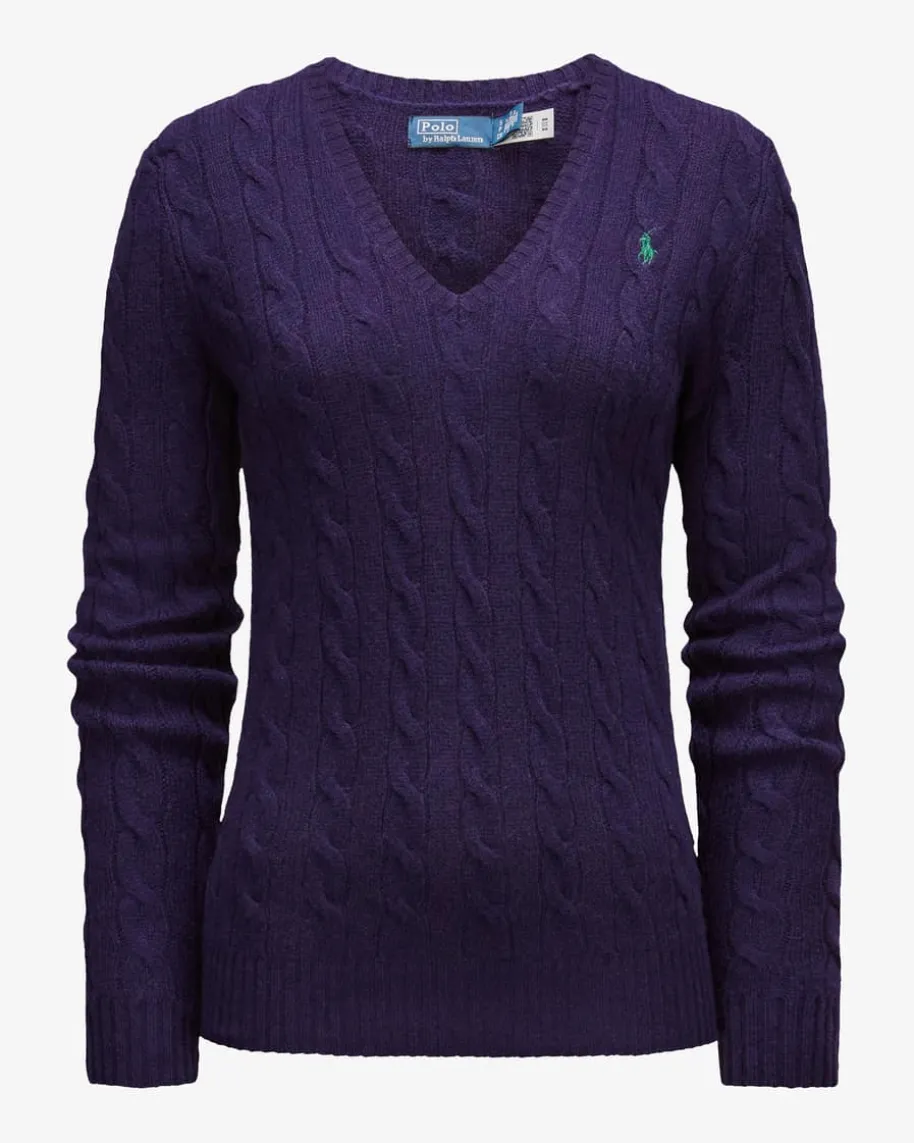 Pullover für Damen von Polo Ralph Lauren in Violett. Qualität, Lifestyle,Authentizität und zeitlose Eleganz – all das zeichnet die Marke Polo RalphLauren seit nunmehr 50 Jahren Firmengeschichte aus. Das Modell begeistert durchden besonders weichen Wolle-Cashmere-Mix mit hohem Tragekomfort. Stilvollabgerundet wird das Design durch die kontrastierende Logo-Stickerei auf derBrust sowie das klassische Zopf-Strickmuster.