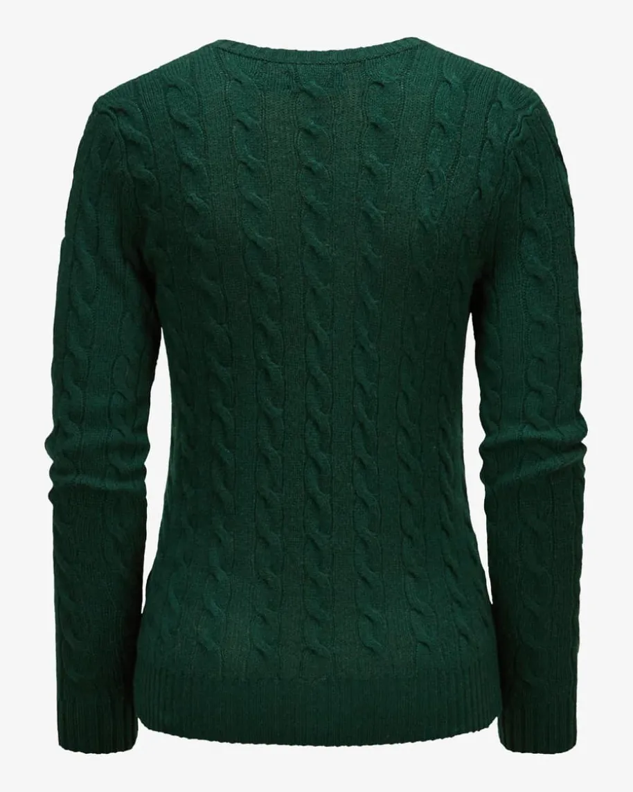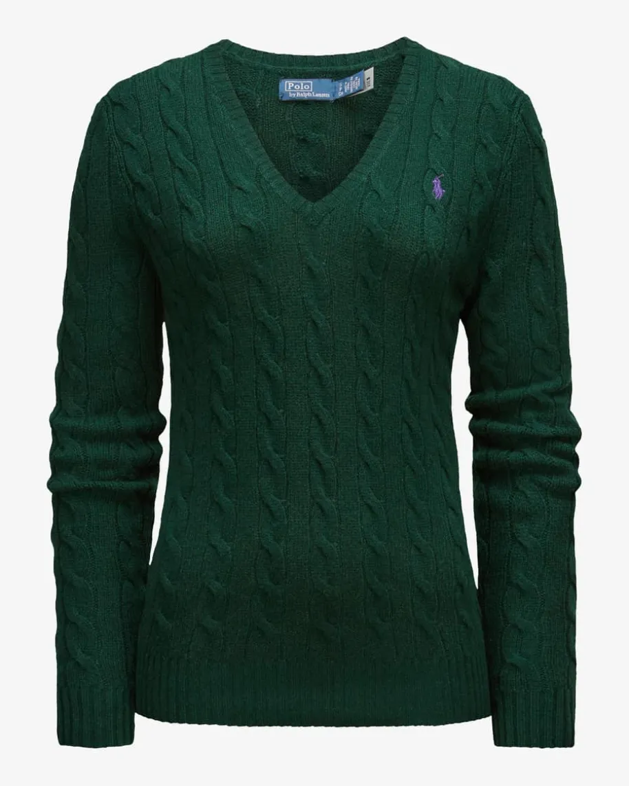 Pullover für Damen von Polo Ralph Lauren in Dunkelgrün. Qualität, Lifestyle,Authentizität und zeitlose Eleganz – all das zeichnet die Marke Polo RalphLauren seit nunmehr 50 Jahren Firmengeschichte aus. Das Modell begeistert durchden besonders weichen Wolle-Cashmere-Mix mit hohem Tragekomfort. Stilvollabgerundet wird das Design durch die kontrastierende Logo-Stickerei auf derBrust sowie das klassische Zopf-Strickmuster.