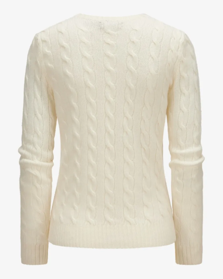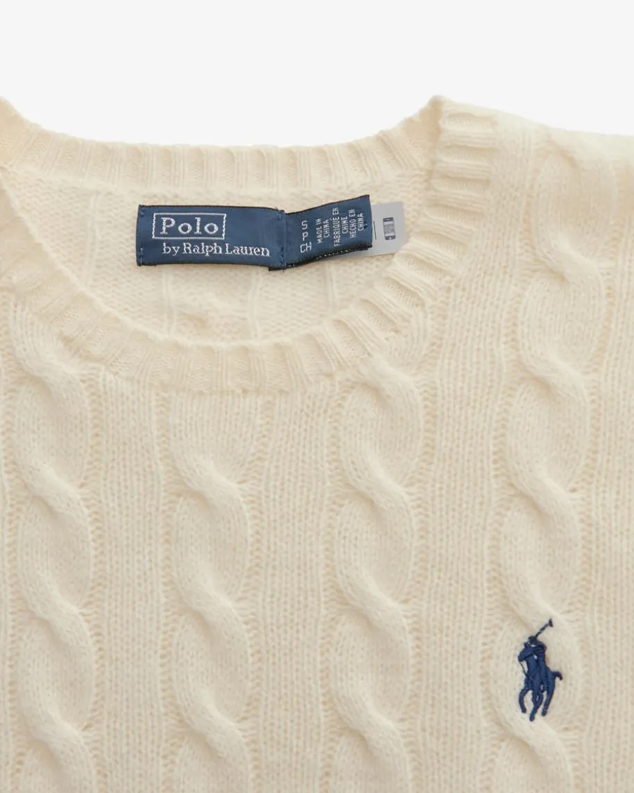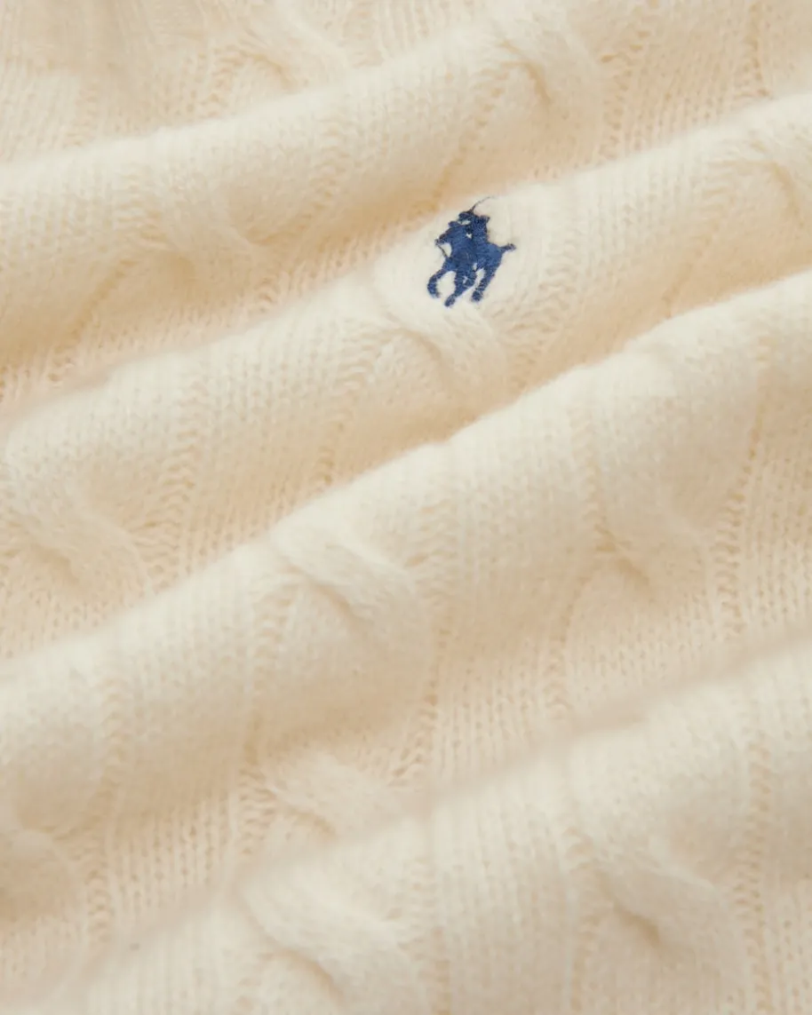 Pullover für Damen von Polo Ralph Lauren in Ecru. Das Modell begeistert durchden besonders weichen Wolle-Cashmere-Mix mit hohem Tragekomfort. Stilvollabgerundet wird das Design durch die kontrastierende Logo-Stickerei auf derBrust sowie das klassische Zopf-Strickmuster.