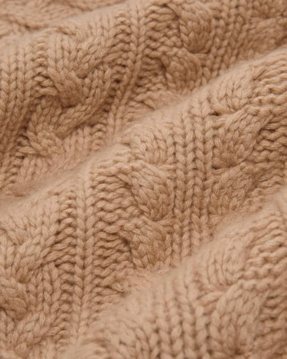 Pullover für Damen von Marc Cain in Beige. Das in Deutschland gefertigte Modellbesticht dank der hochwertigen Material-Qualität mit einem besonders weichenGriff, während raffinierte Fransen-Details sowie das modische Zopfstrick-Musterdem Gesamtbild den letzten Schliff verleihen.