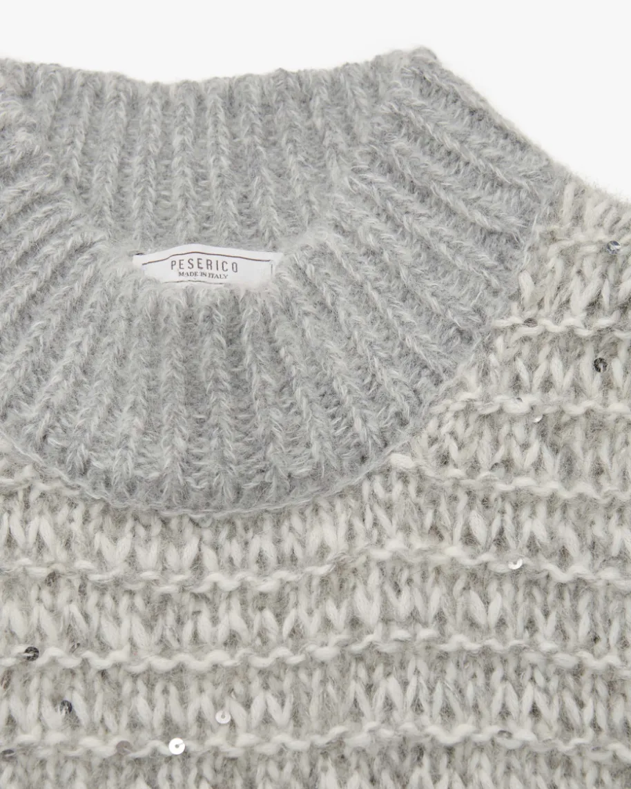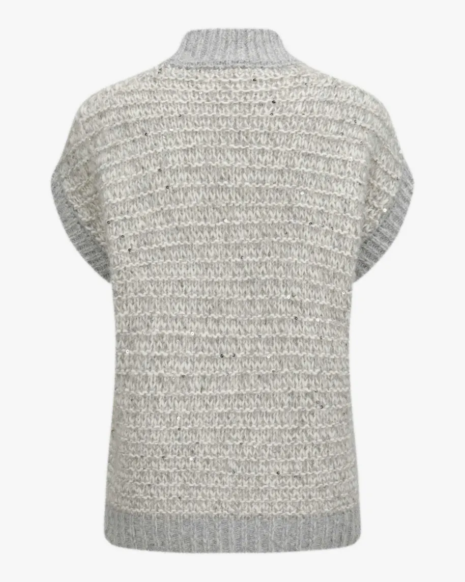 Pullunder für Damen von Peserico in Hellgrau und Off-White. Das kastige Modellaus hochwertigem Alpakawoll-Mix in weichem Grobstrick punktet dank der Melange-Optik mit changierenden Pailletten-Applikationen als modernes Highlight, währendder sonst legere Style einen idealen Layering-Favoriten für Ihre Herbst-/Winter-Garderobe kreiert.