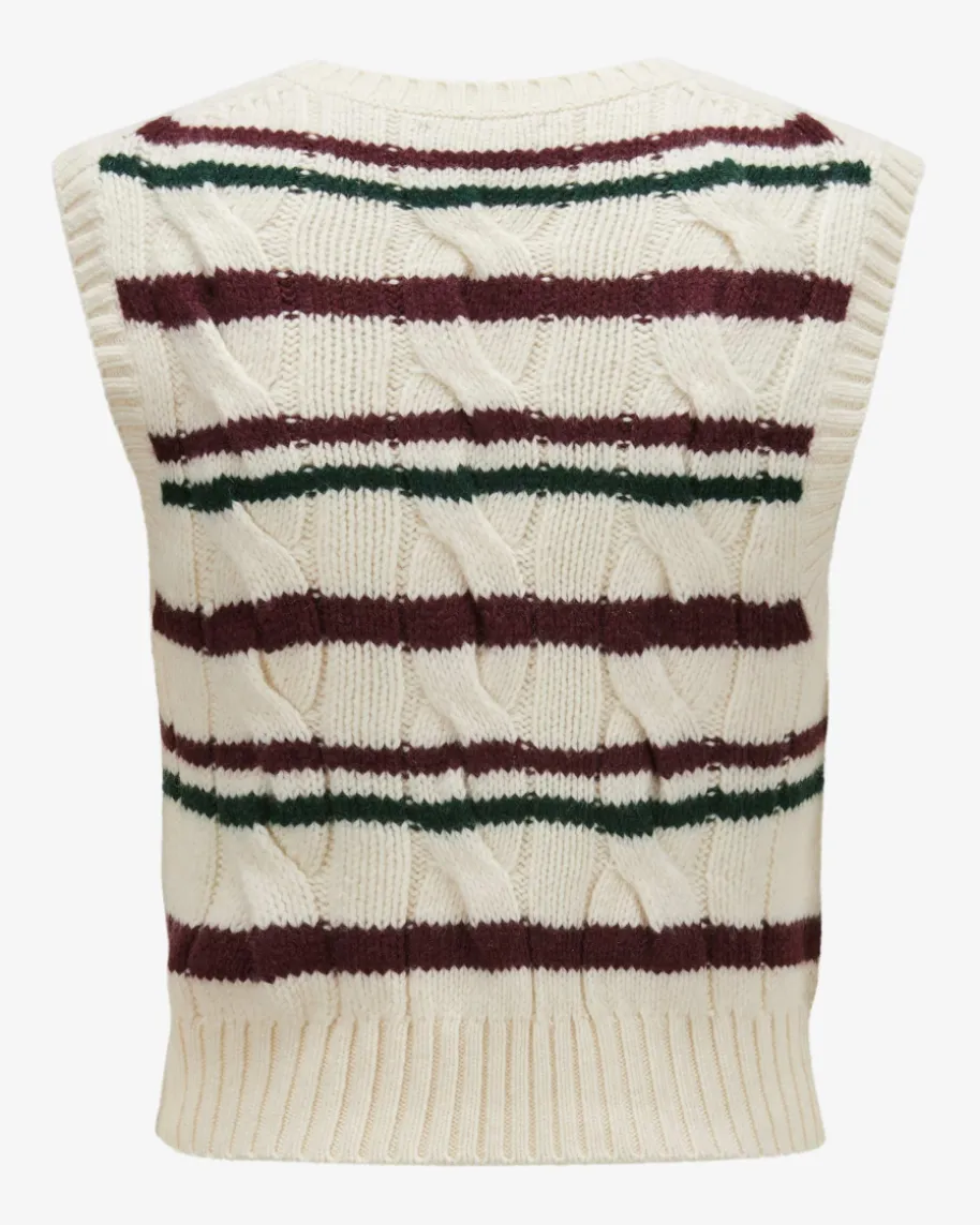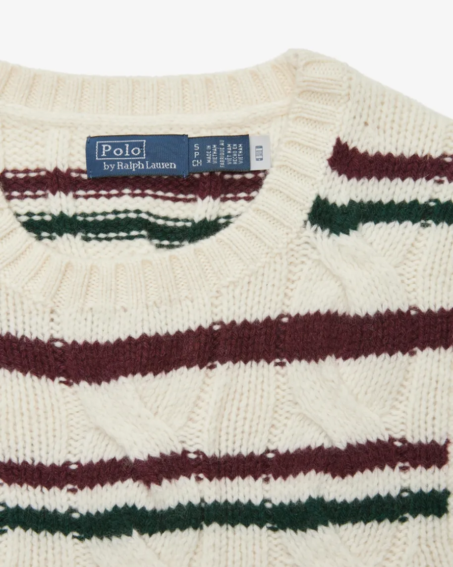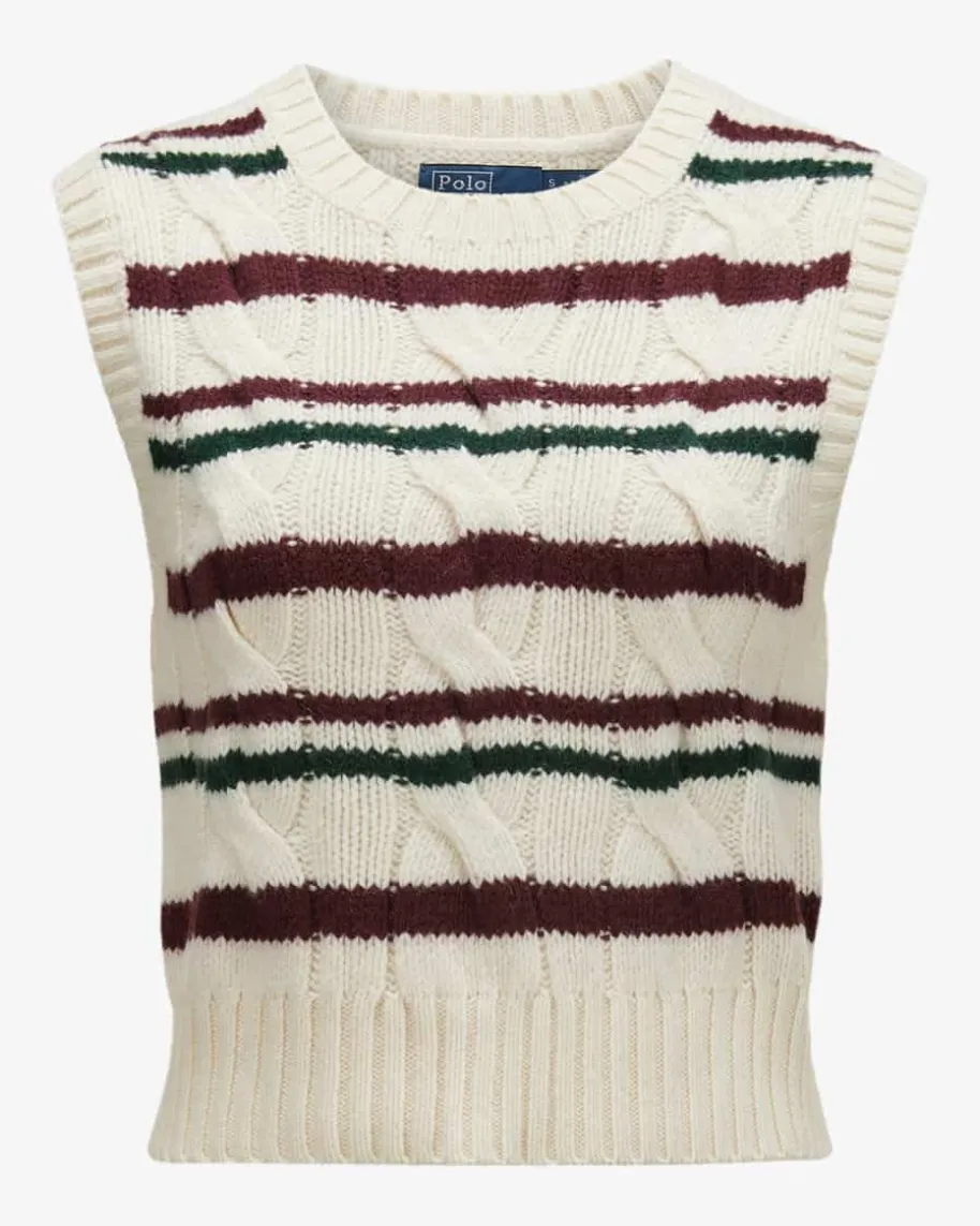 Pullunder für Damen von Polo Ralph Lauren in Creme, Dunkelrot und Dunkelgrün.Während der hochwertige Woll-Cashmere-Mix in schwerer Haptik einen komfortablenLook kreiert, verleiht das klassische Zopfstrick-Design zusammen mit demStreifenmuster einen modernen Touch. Kombiniert als Layering-Piece entsteht einstilvoller Herbst-Begleiter.