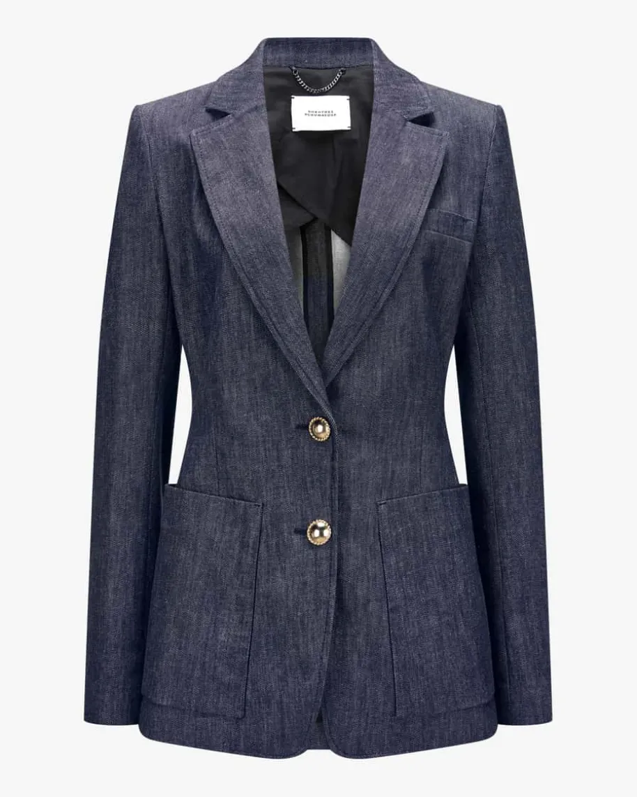 Pure Love Blazer für Damen von Dorothee Schumacher in Nachtblau. Während diemarkante Denim-Optik sowohl haptisch als auch optisch überzeugt, avanciertdieses Modell dank klassischer Details zum vielseitigen Begleiter. Diegoldfarbenen Knöpfe verleihen dem Design das gewisse Etwas und runden den Styleperfekt ab.