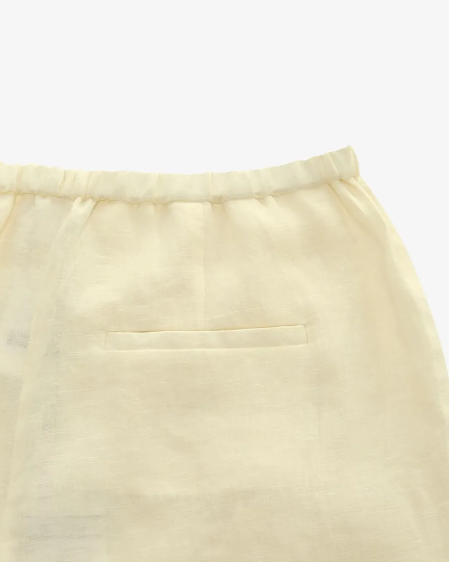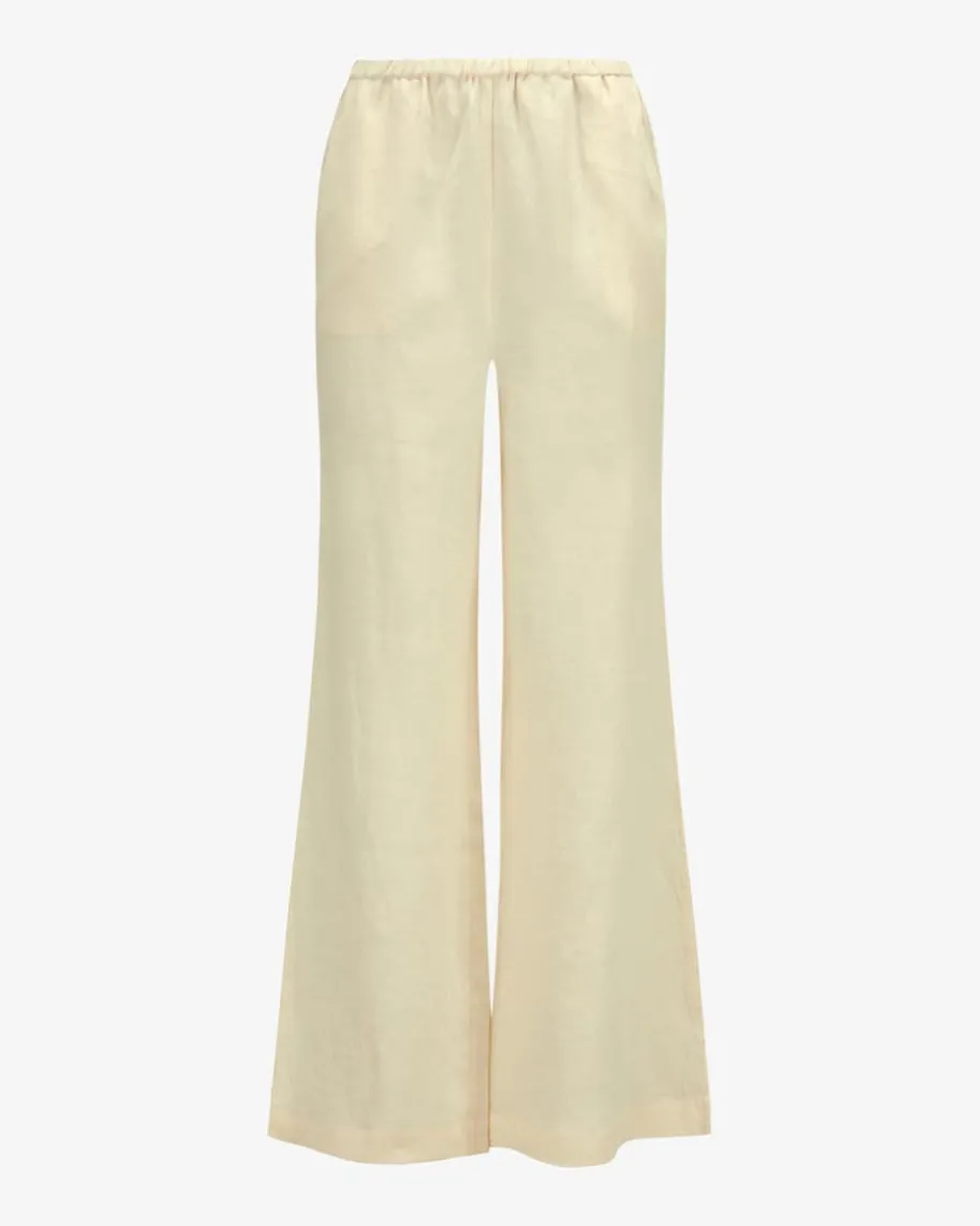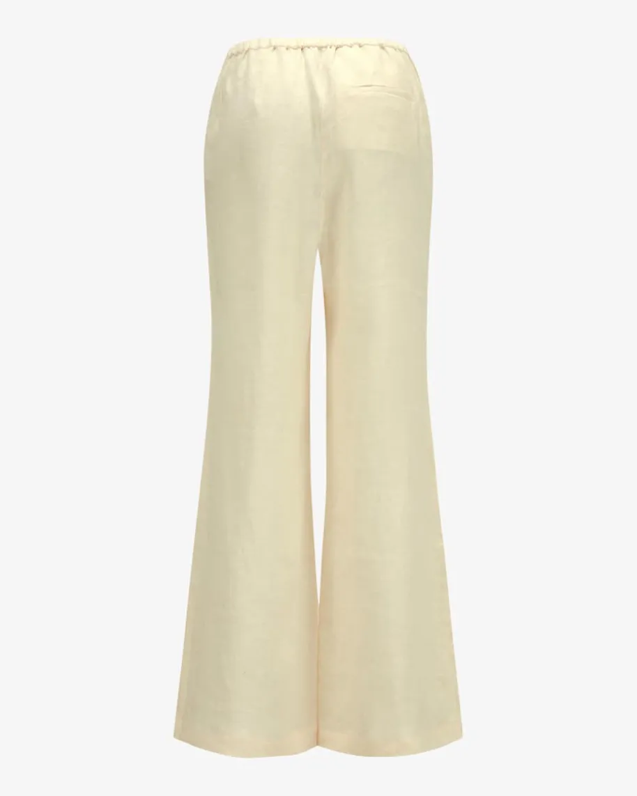 Randy Hose für Damen von Hemisphere in Creme. Das Modell überzeugt mitstrukturierter Leinen-Qualität, die zusammen mit dem elastischen Gummibund füreinen angenehmen Tragekomfort sorgt. Die weite, ausgestellte Passform setztzudem modische Akzente.
