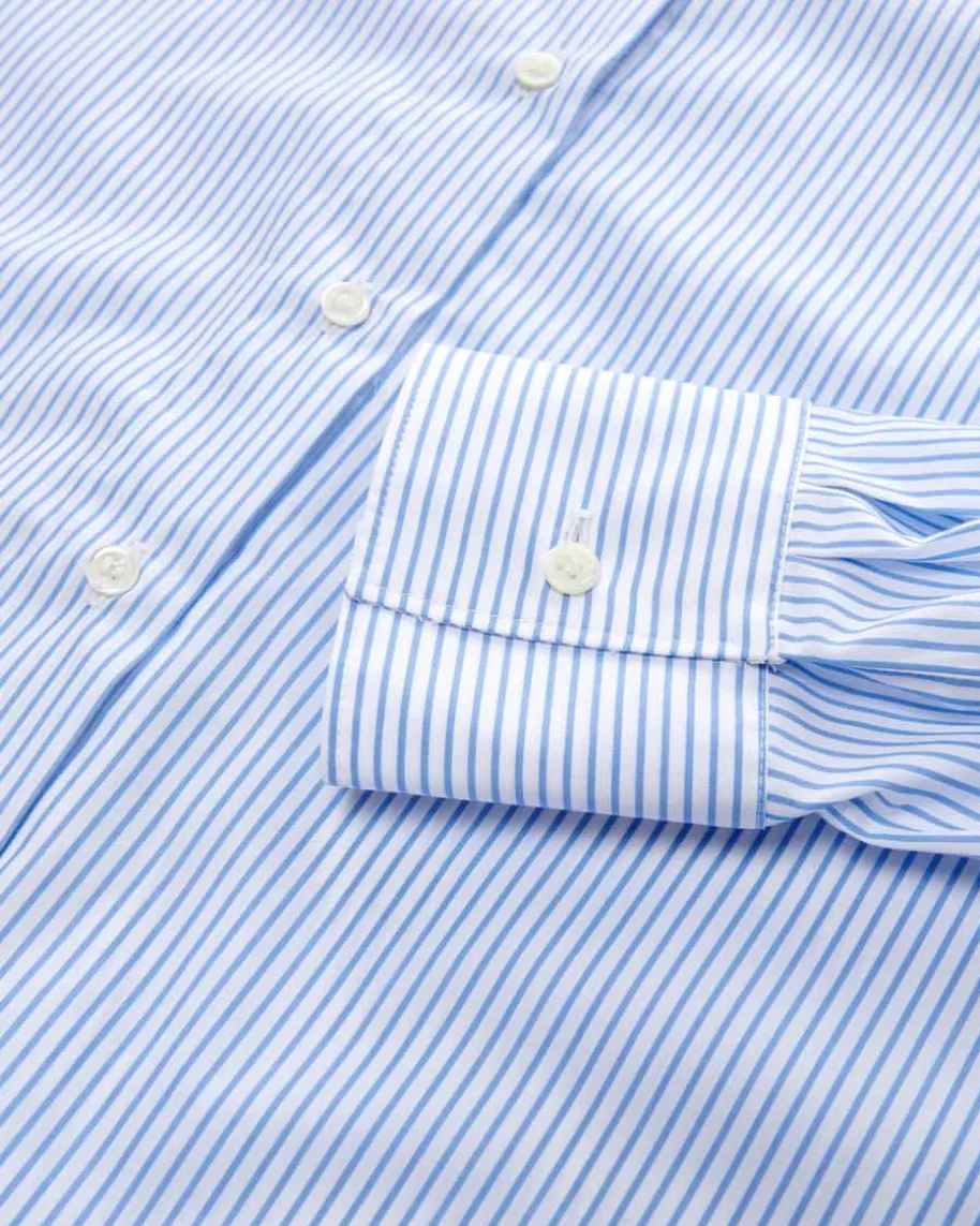 Renee Hemdbluse für Damen von Robert Friedman in Blau und Weiß. Das Modell inhochwertiger Baumwoll-Qualität überzeugt mit angenehmen Tragemomenten, währenddas Streifen-Dessin einen modernen Begleiter für vielseitige Styles schafft.