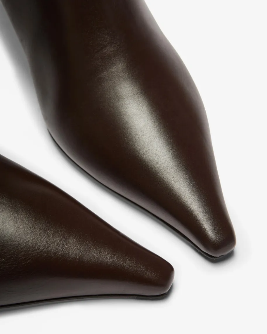 Rhea Stiefel für Damen von Aeyde in Dunkelbraun. Dank der spitzen Form unddezentem Absatz besticht das Modell mit femininem Charme, während diehochwertige Glattleder-Qualität einen eleganten Look kreiert.