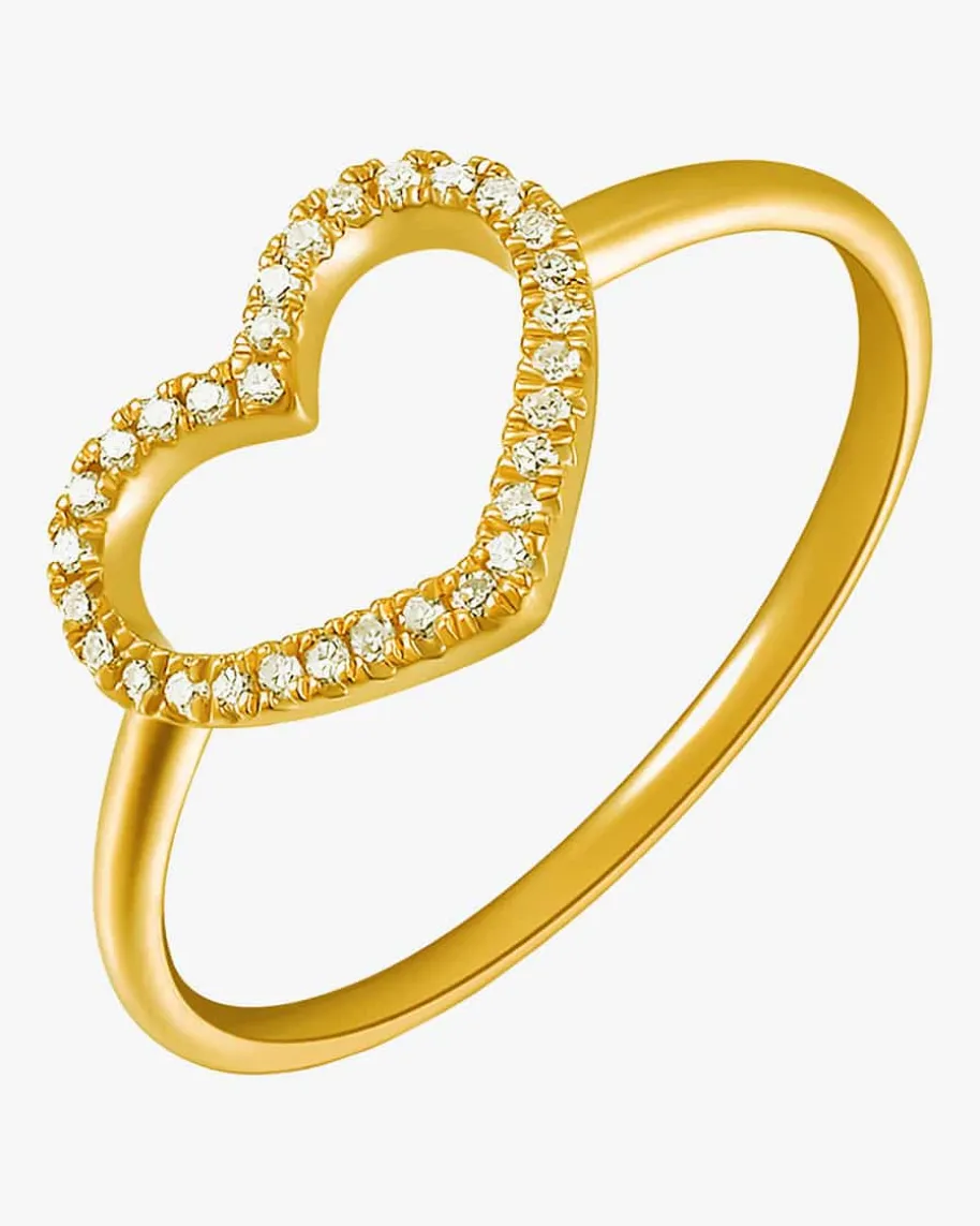 Ring für Damen von Leaf in Golden. Gefertigt aus feinstem Gelbgold und veredeltmit einem Diamantenbesatz, erstrahlt der Herz-Ring in seinem gesamten Glanz. DerRing stellt das perfekte Accessoire für feierliche Anlässe und modische Outfitsdar.