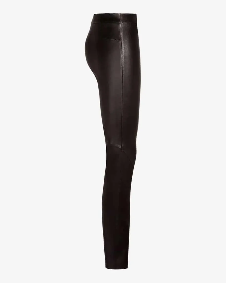 Roche Lederleggings für Damen von Arma in Schwarz. Das schmal geschnitteneModell begeistert durch die hochwertige Lammleder-Qualität. Ein seitlicherReißverschluss sowie der elastische Bund sorgen für eine feminine Passform.