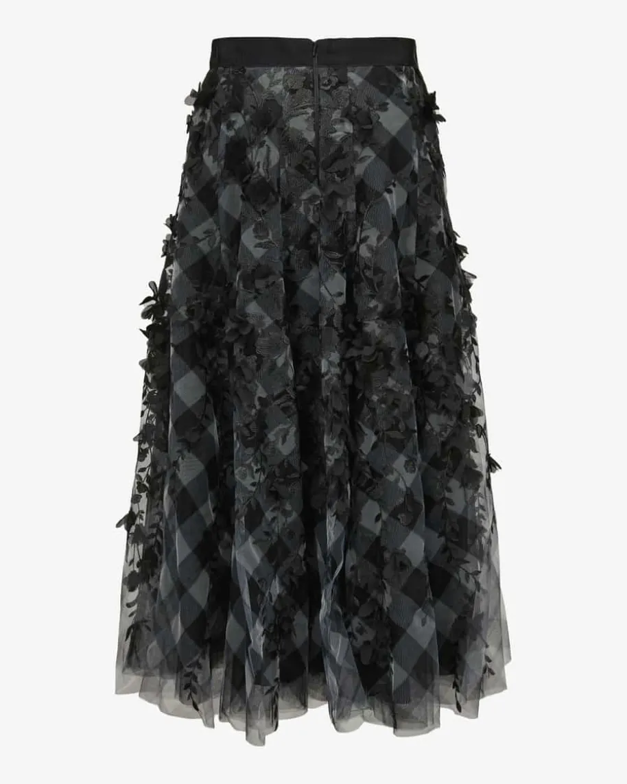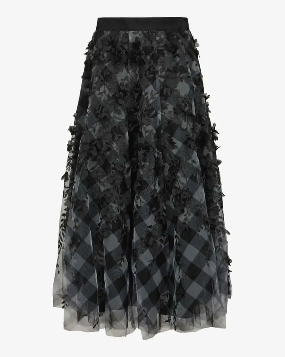Rock für Damen von Maison Common in Schwarz und Grau. Das Label verkörpertLebensfreude und Esprit, die sich neben femininem Charme mit farbenfrohenDesigns sowie Mustern in den Kollektionen wiederfinden. Auch dieses Modellbegeistert dank des ausgefallenen floralen-Karo-Dessin im Lagenlook.