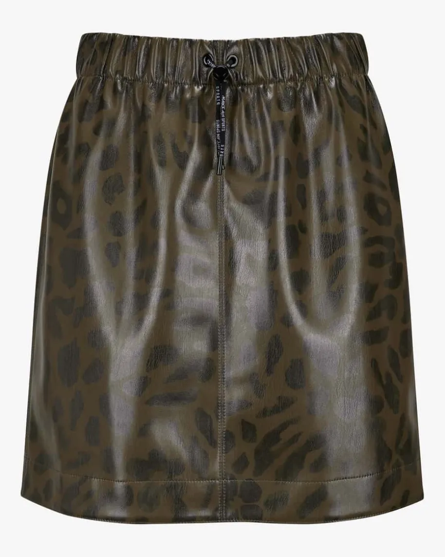 Rock für Damen von Marc Cain in Dunkeloliv und Dunkelbraun. Marc Cain verbindetÄsthetik und Kunst mit Lässigkeit und Natürlichkeit. Innovative Schnitte undeine farbenfrohe Palette prägen das deutsche Label. Auch dieses Modellpräsentiert sich mit raffiniertem Leo-Print auf changierender Leder-Optik, diefür einen einzigartigen Style sorgt. Der elastische Tunnelzug-Bund rundet denmodischen Statement-Look gekonnt ab.