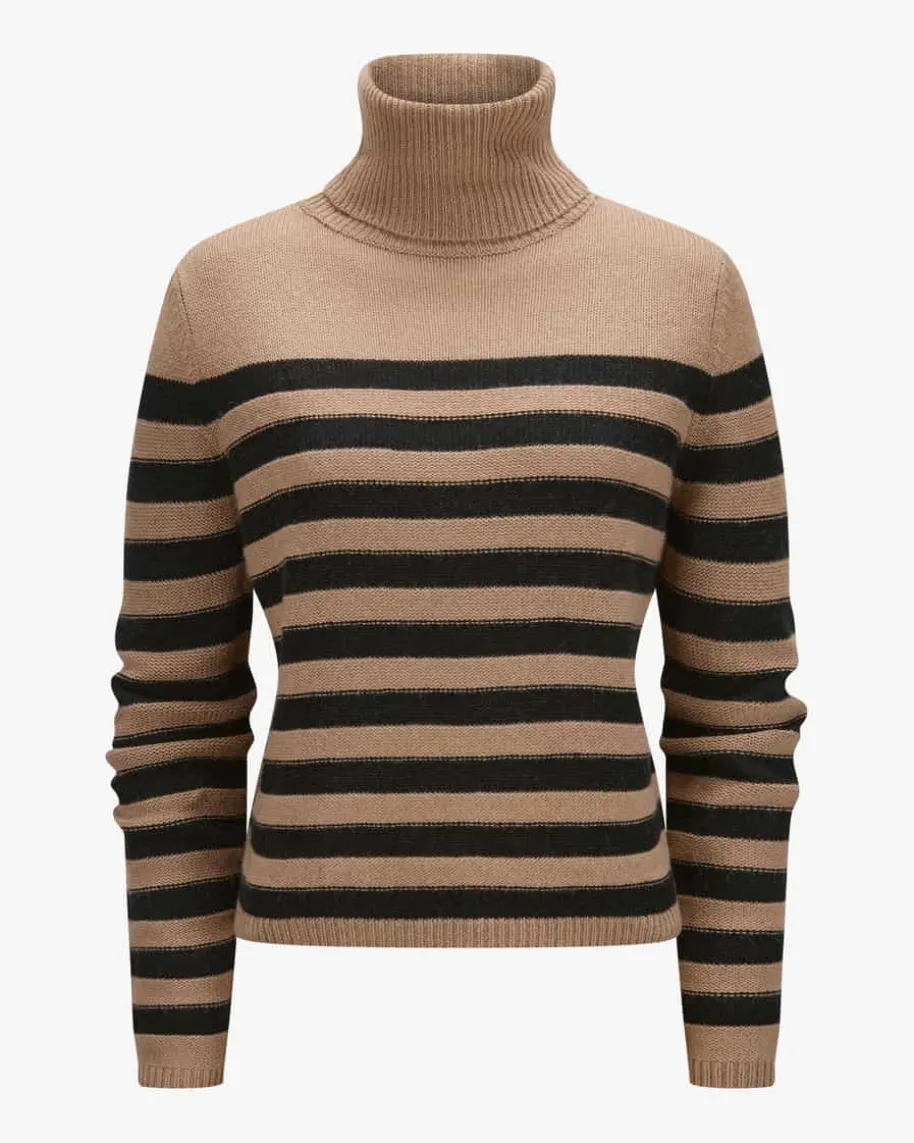 Rollkragenpullover für Damen von Allude in Camel und Schwarz. Das Münchner Labelwurde 1993 von Andrea Karg gegründet und ist bekannt für luxuriöse Strickmodeaus edlem Cashmere. Auch dieses Modell überzeugt mit hochwertigem Schurwolle-Cashmere-Mix, der für angenehmen Tragekomfort sorgt. Das elegante Streifenmusterrundet den modischen Style harmonisch ab.