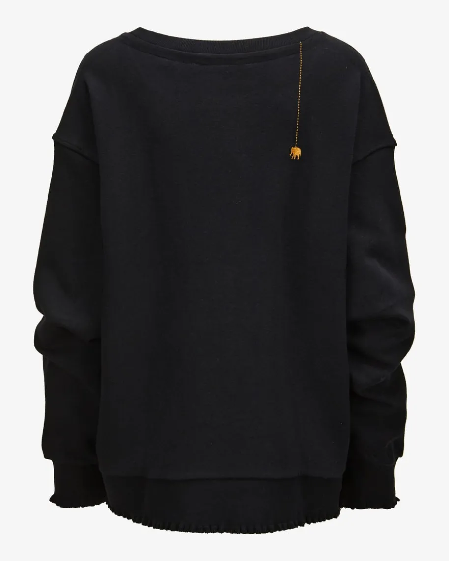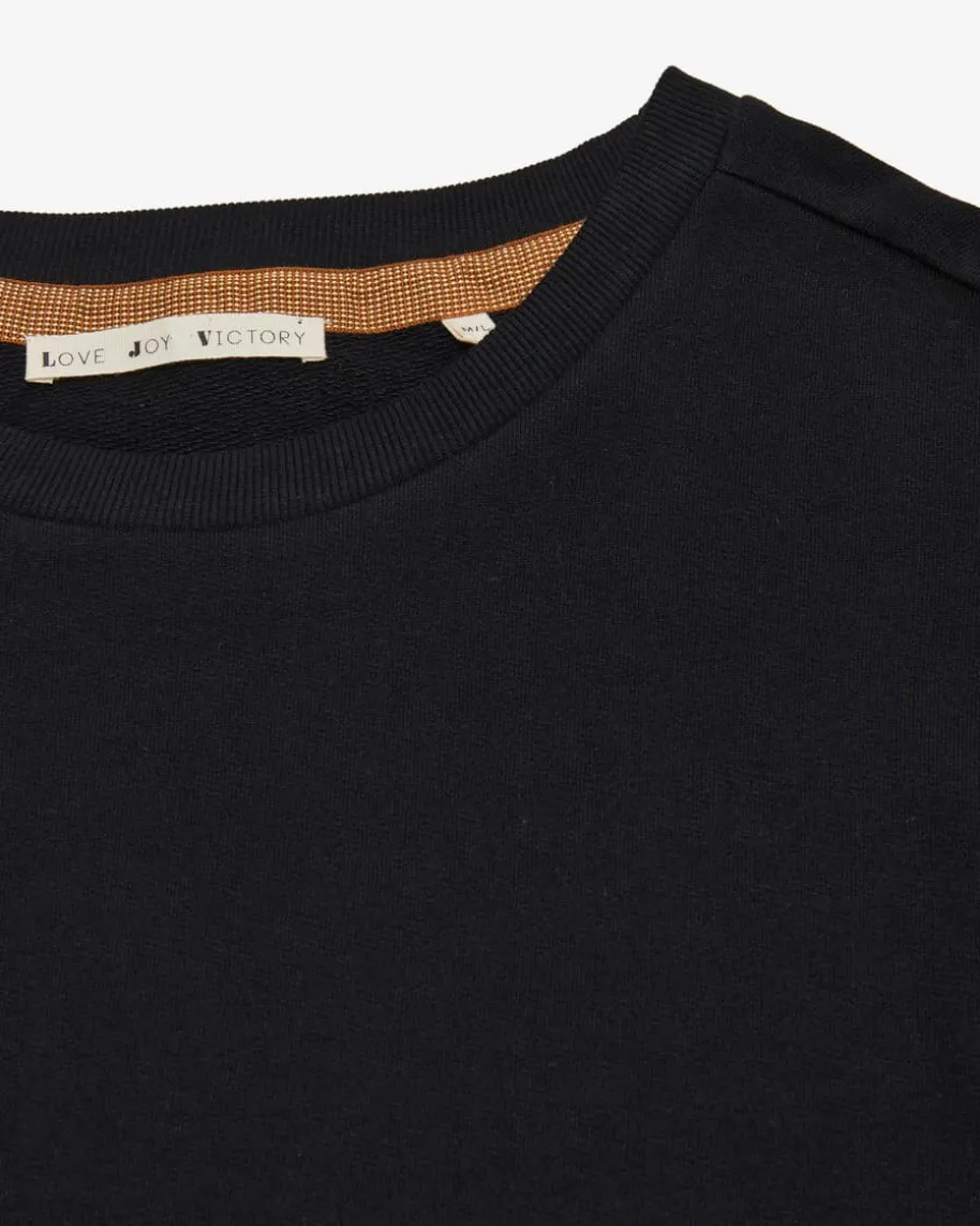 Rose Sweatshirt für Damen von Love Joy Victory in Schwarz. Ein modischesWohlfühl-Piece! Dank der weichen Baumwoll-Qualität erhält das Modell eine weicheHaptik und einen modisch-legeren Look, während die Rippstrick-Details mitzarten Rüschen optische Highlights setzen.