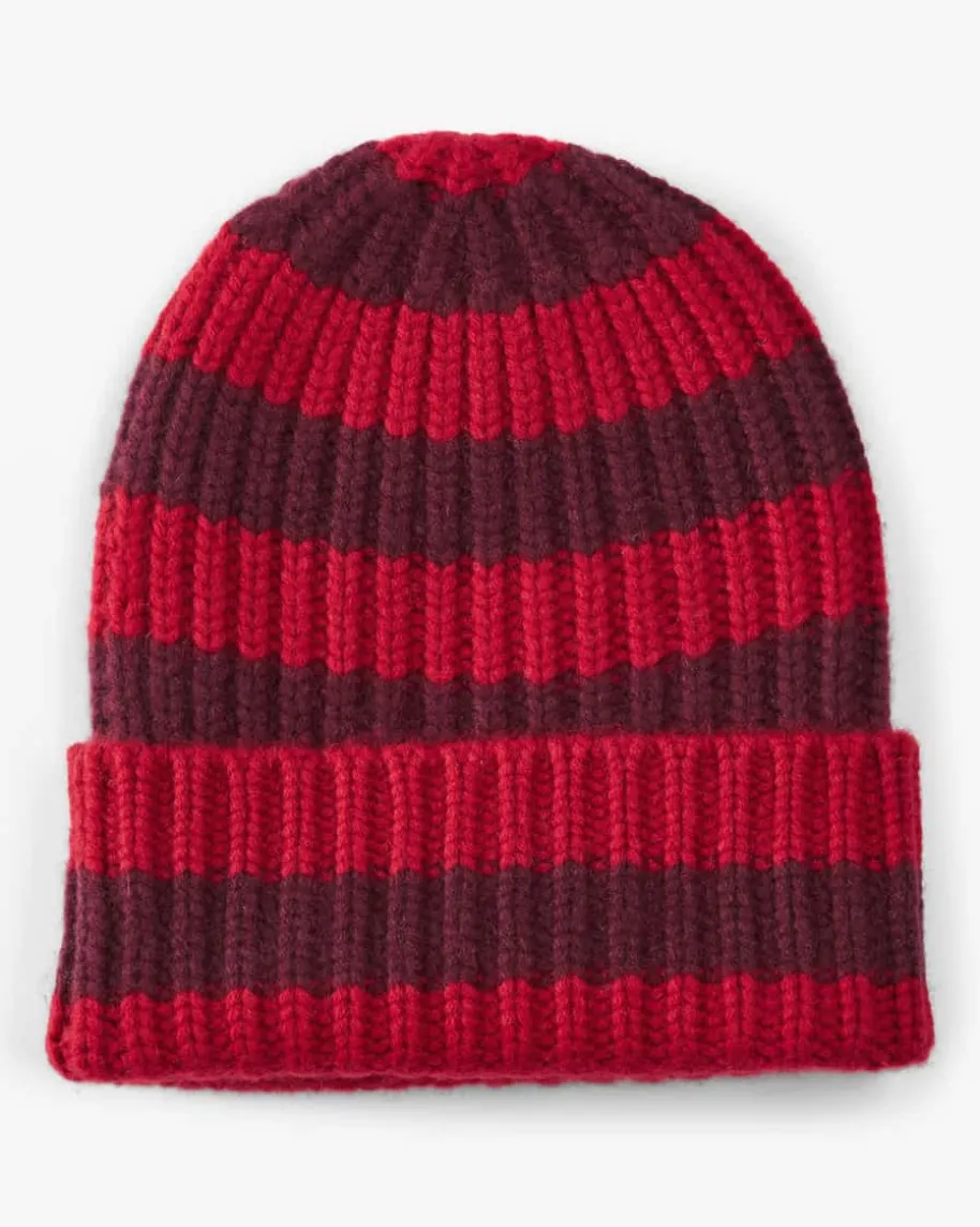 Sailor Cashmere-Mütze für Damen von Hurray Cashmere in Boredaux und Rot. DasModell aus hochwertiger Cashmere-Qualität avanciert durch sein grobes Strick-Design und softes Tragegefühl zum perfekten Begleiter für den Winter, währenddie modische Farbgebung den Look harmonisch vollendet.