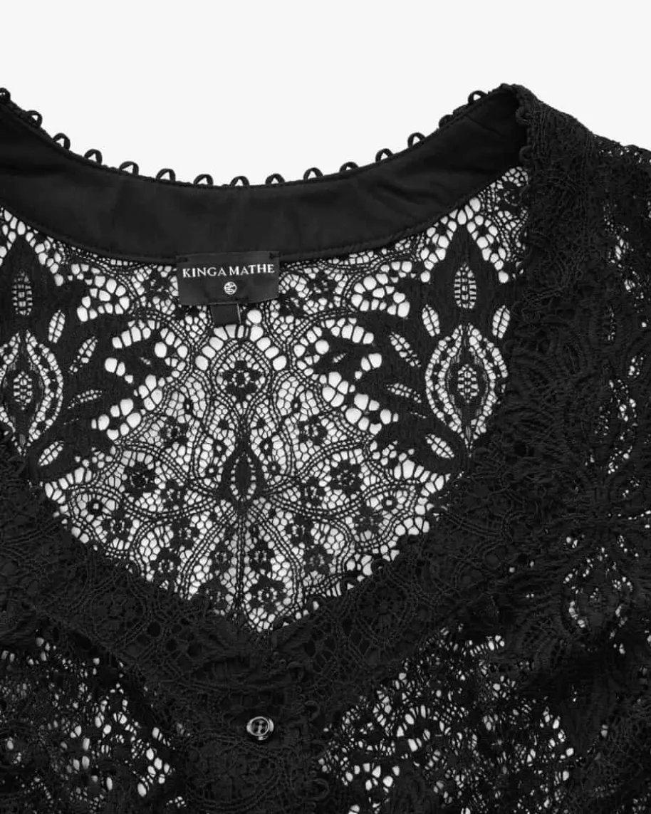 Samantha Dirndlbluse für Damen von Kinga Mathe in Schwarz. Dank der feinenSpitzesowie den Zierborten erhält das semi-transparente Modell einen traditionellenund zugleichromantischen Charakter.
