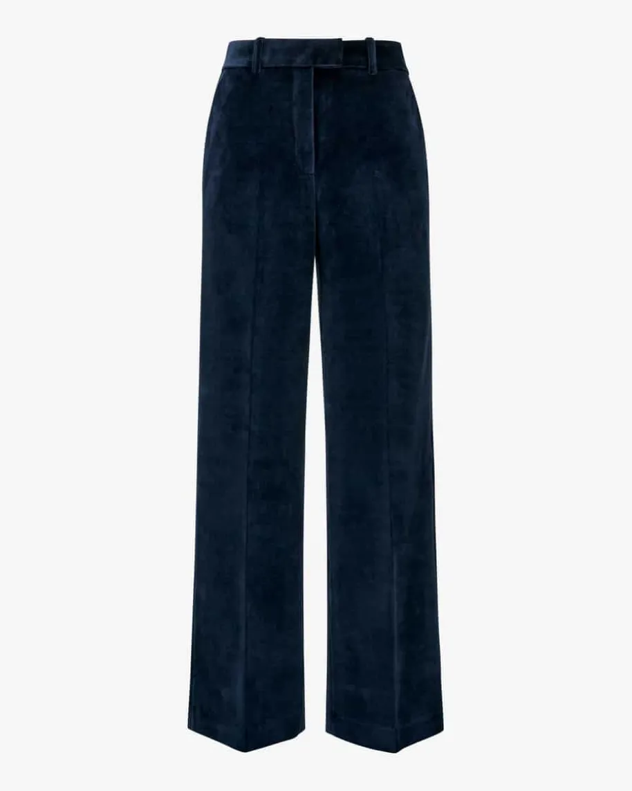 Samthose für Damen von Circolo 1901 in Navy. Das Modell mit weitem Bein undhohem Bund präsentiert sich in weicher Samt-Qualität, welche sowohl haptisch alsauch optisch überzeugt und zusammen mit dem passenden Blazer im femininen Power-Look erstrahlt.