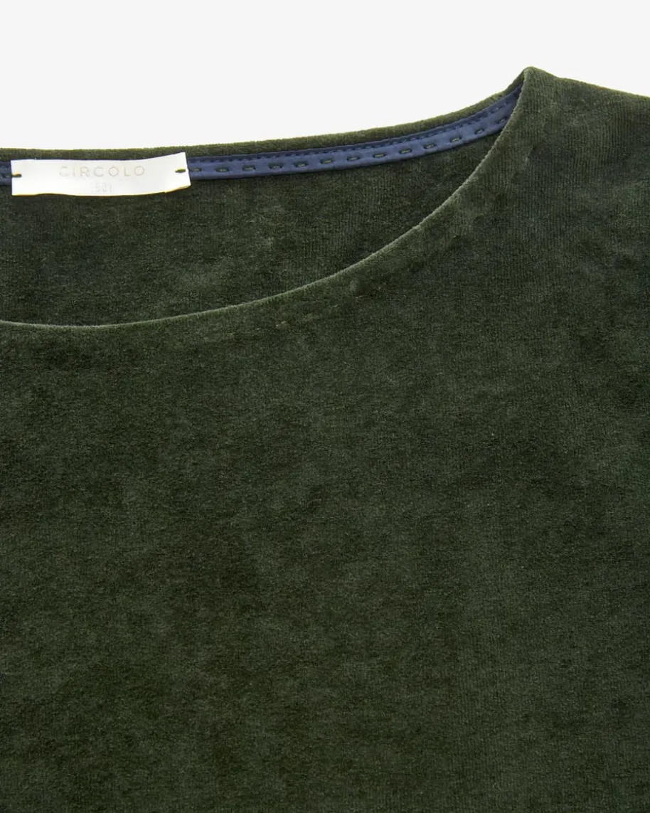 Samtkleid für Damen von Circolo 1901 in Tanne. Das Midi-Modell in weiterPassform präsentiert sich in weicher Samt-Qualität, welche sowohl haptisch alsauch optisch überzeugt und zusammen mit dem passenden Blazer im femininen Power-Look erstrahlt.