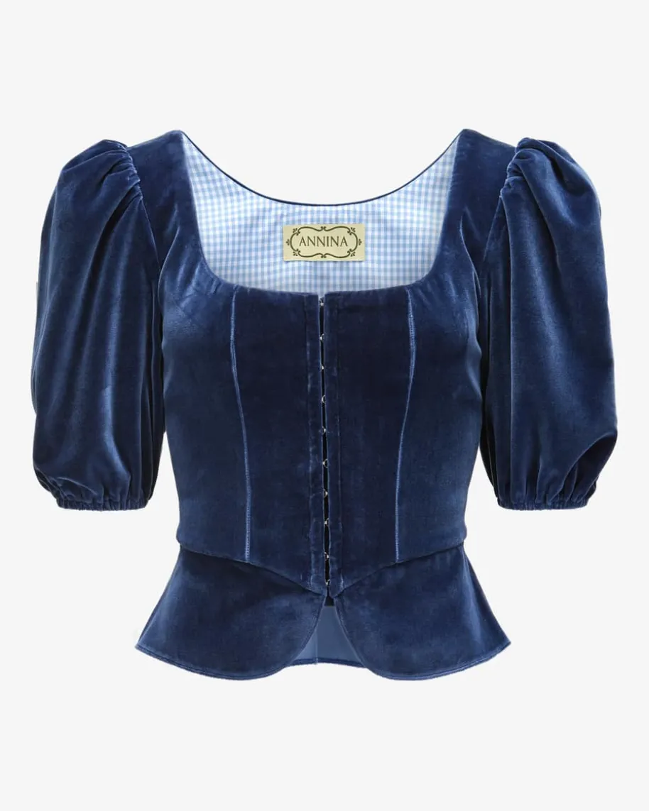 Samtmieder für Damen von Annina in Navy. Das taillierte Modell besticht dank derweichen Samt-Qualität mit weichem Griff und als optisches Highlight, währendtraditionelle Details einen festlichen Begleiter kreiert. – egal ob kombiniertzum femininen Rock oder zur rustikalen Lederhose.