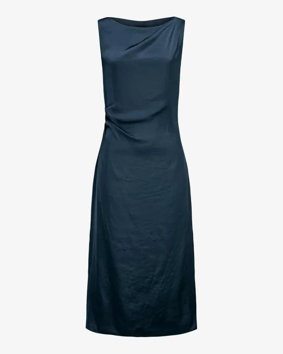 Satinkleid für Damen von Theory in Navy. Das Modell besticht dank der fließendenMaterial-Qualität in Satin-Optik mit einem besonders leicht- angenehmenTragegefühl, während das drapierte Design einen vielseitigen Favoriten schafft.