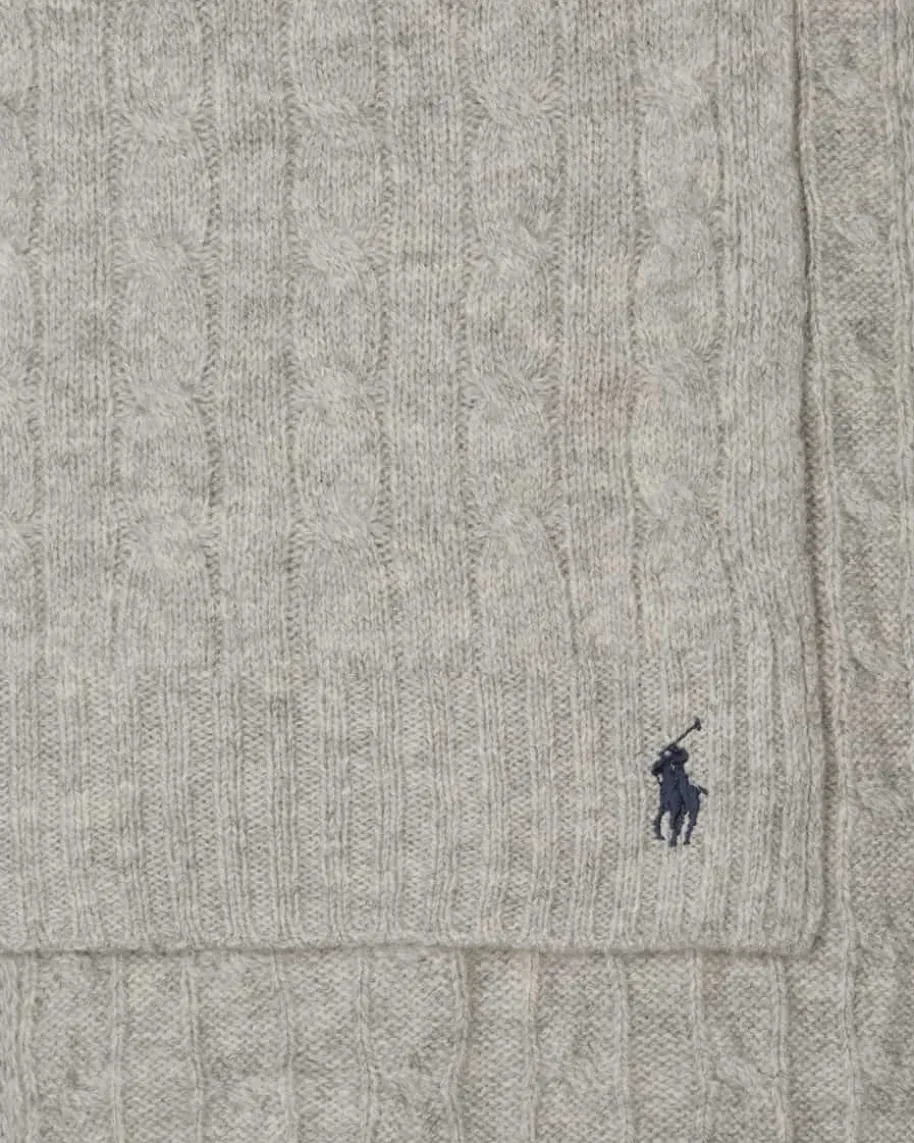Strickschal für Damen von Polo Ralph Lauren in Grau. Das Modell präsentiert sichdank des hochwertigen Woll-Cashmere-Mix als weicher Favorit mit angenehm-leichtem Griff, während das Zopf-Design sowie Rippstrick-Details dem Gesamtbildeinen klassisch-modernen Charakter verleihen.