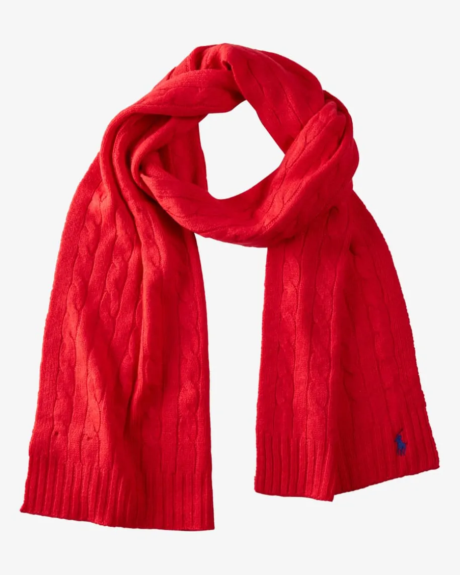 Strickschal für Damen von Polo Ralph Lauren in Rot. Das Modell präsentiert sichdank des hochwertigen Woll-Cashmere-Mix als weicher Favorit mit angenehm-leichtem Griff, während das Zopf-Design sowie Rippstrick-Details dem Gesamtbildeinen klassisch-modernen Charakter verleihen.