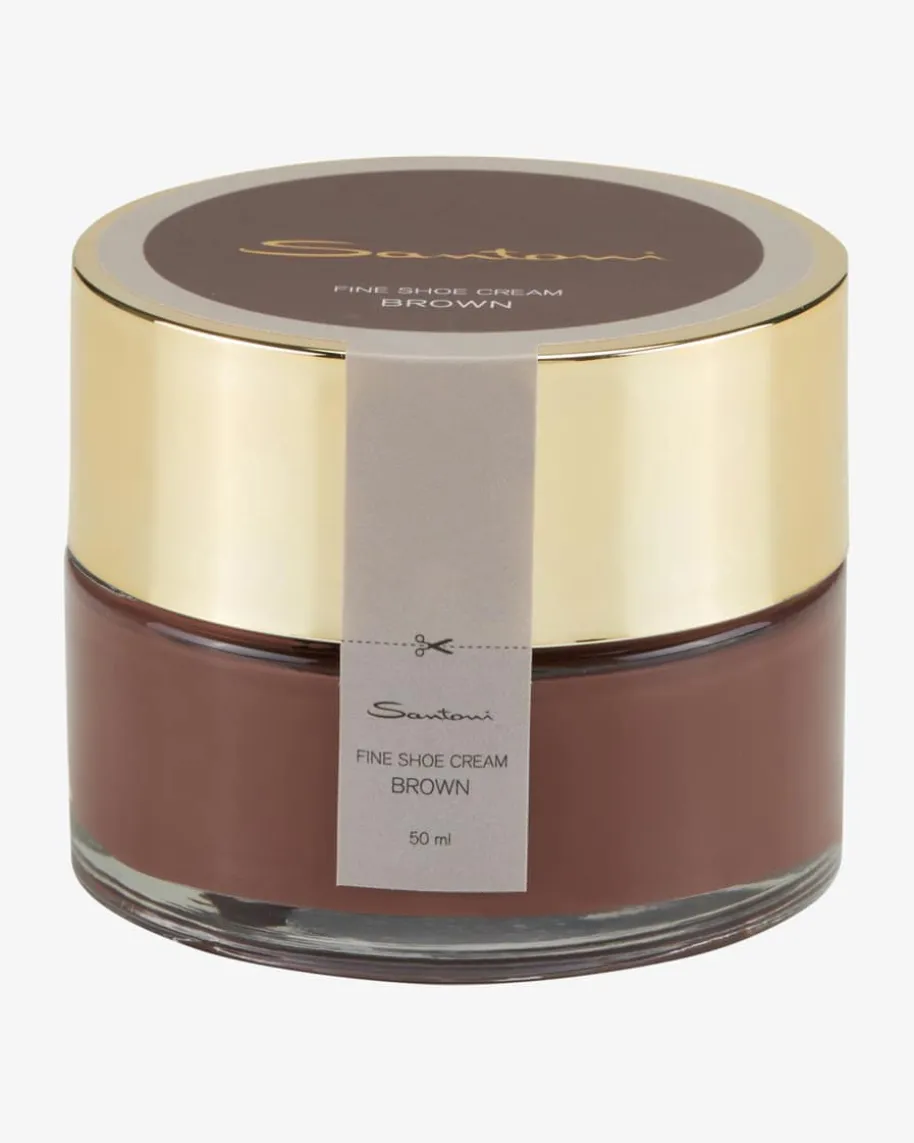Schuhcreme von Santoni in Braun. Die richtige Pflege ist dasGeheimnis zeitloserSchönheit – Ergänzen Sie Ihre Schuhpflege mit der farblich-perfekten Schuhcremeauf der Basis von Carnaubawachs und Bienenwachs. Diese istideal für diesachgemäße Pflege, Reinigung und der Farbauffrischung IhrerSantoni-Schuhe,damit Sie auch bei langer Nutzung weich und glänzendbleiben. Das Produkt wirdper Schwamm oder weichen Tuch auf das Oberleder aufgetragen,das anschließendmit einem sauberen Tuch poliert wird. Sie sollten es nichtauf Wildleder oderLackleder anwenden.