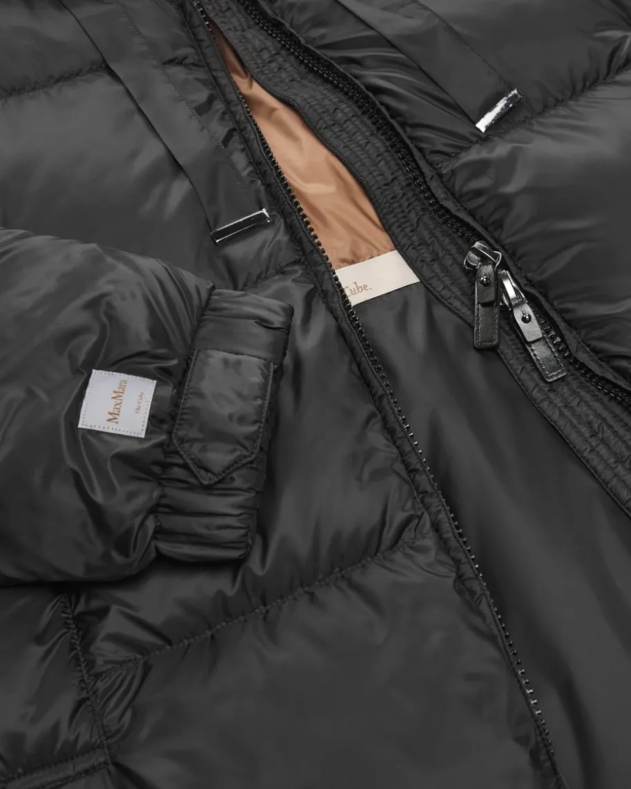 Sei Daunenmantel für Damen von Max Mara The Cube in Schwarz. Das dezentchangierende Modell besticht dank der Stepp-Optik in sportiver Aufmachung,während die hochwertige Daunen-Feder-Füllung für eine optimale Wärmeisolierungsorgt. Zudem rundet das reflektierende Logo-Detail am Ärmel den Look harmonischab.