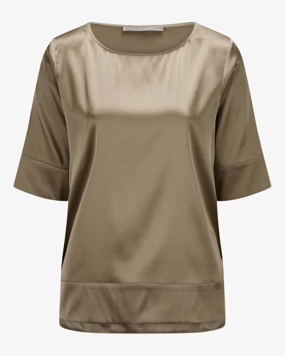 Seiden-Blusenshirt für Damen von (The Mercer) N.Y. in Cappuccino. Das weitgeschnittene Modell zeichnet sich besonders durch die elastische Seiden-Qualitätaus, die nicht nur ein edel changierendes Finish verleiht, sondern auch mitangenehmer Haptik punktet.