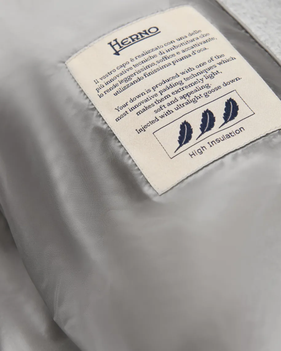 Seiden-Cashmere-Daunenmantel für Damen von Herno in Hellgrau. Das italienischePremium Label ist seit Jahren bekannt für seine besonders leichten Daunenjacken,die mit zeitlos-sportiven Designs überzeugen. Auch dieses verlängerte Modellbegeistert mit weicher Stepp-Optik sowie hochwertiger Daunen-Feder-Füllung, diefür angenehm-warme Tragemomente sorgt.