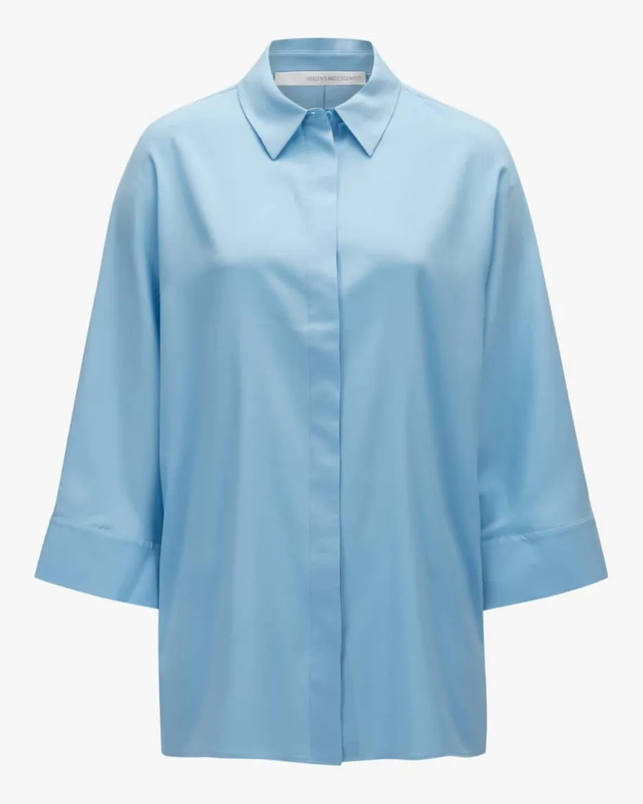 Seiden-Hemdbluse für Damen von Herzen`s Angelegenheit in Hellblau. Das Modellausfließender Seiden-Qualität schafft besonders angenehme Tragemomente und punktetin edler Aufmachung, während die verkürzten Ärmel und die verdeckte Knopfleisteeine moderne Note verleihen.