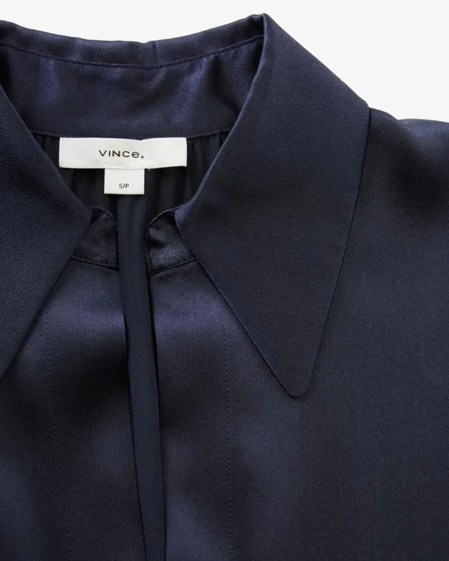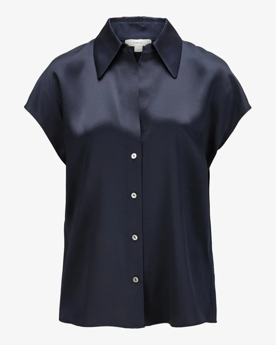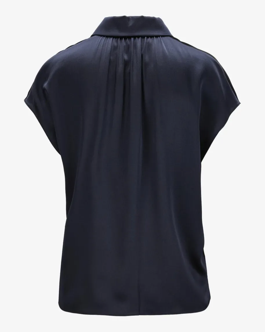 Seidenblusentop für Damen von Vince in Navy. Das ärmellose Modell präsentiertsich mit weiter Passform und klassischen Details, während die changierendeSeiden-Qualität für modische Auftritte und angenehm leichten Tragekomfort sorgt.