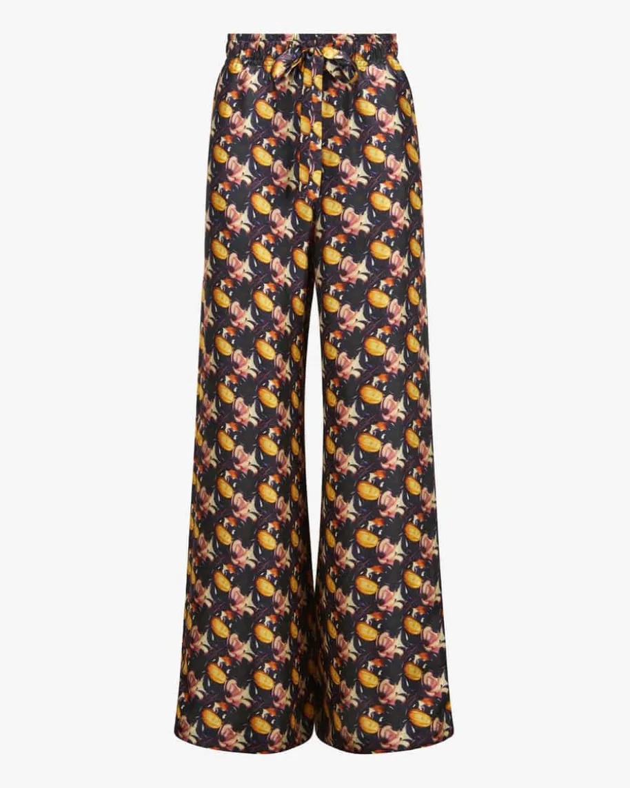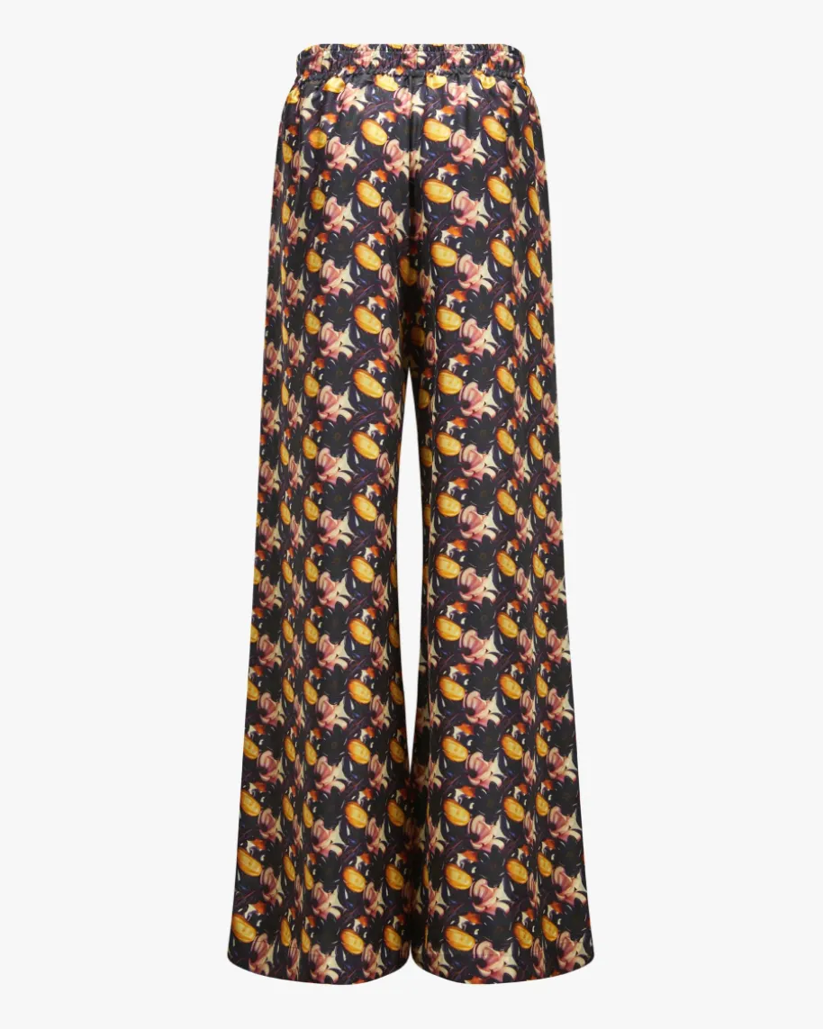 Hose für Damen von Odeeh in Aubergine, Gelb und Sand. Mit weitem Beinpräsentiert sich dieses Modell, das als abwechslungsreicher Begleiter für Casualwie auch edle Events dient. Zugleich verleiht der Allover Blumenprint einefeminine Note.