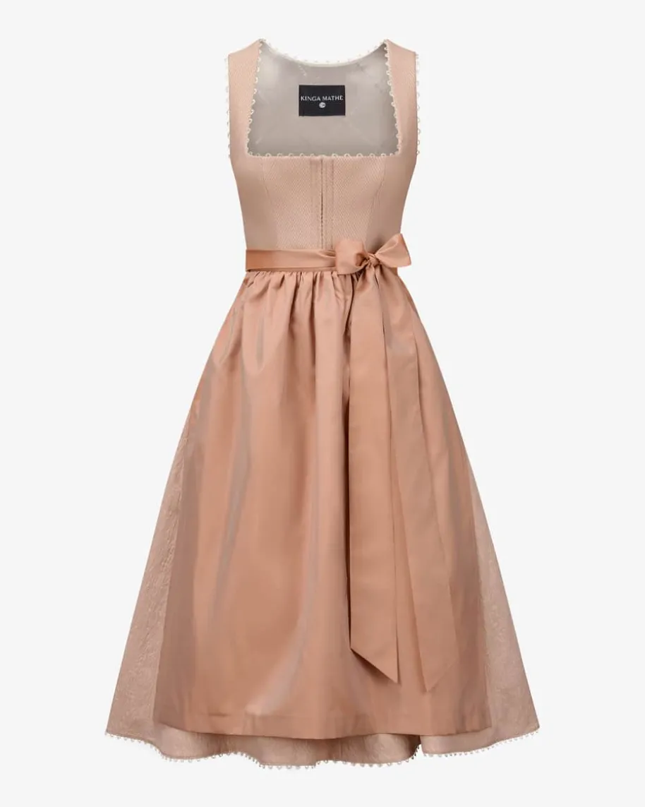 Sezann Midi-Dirndl mit Schürze für Damen von Kinga Mathe in Apricot. Mit Liebezum Detail entwirft das deutsche Label aufwendige Trachten-Kreationen mit demgewissen Etwas und überzeugt mit erlesener Stoffauswahl sowie kreative Designs.Das Modell überzeugt mit strukturiertem Mieder und feinen Zierborten, währendder Unterrock mit Volants-Saum eine feminine Passform verleiht. Die dezentchangierende Schürze aus Seiden-Mix komplettiert den Jacquard-Rock harmonisch.