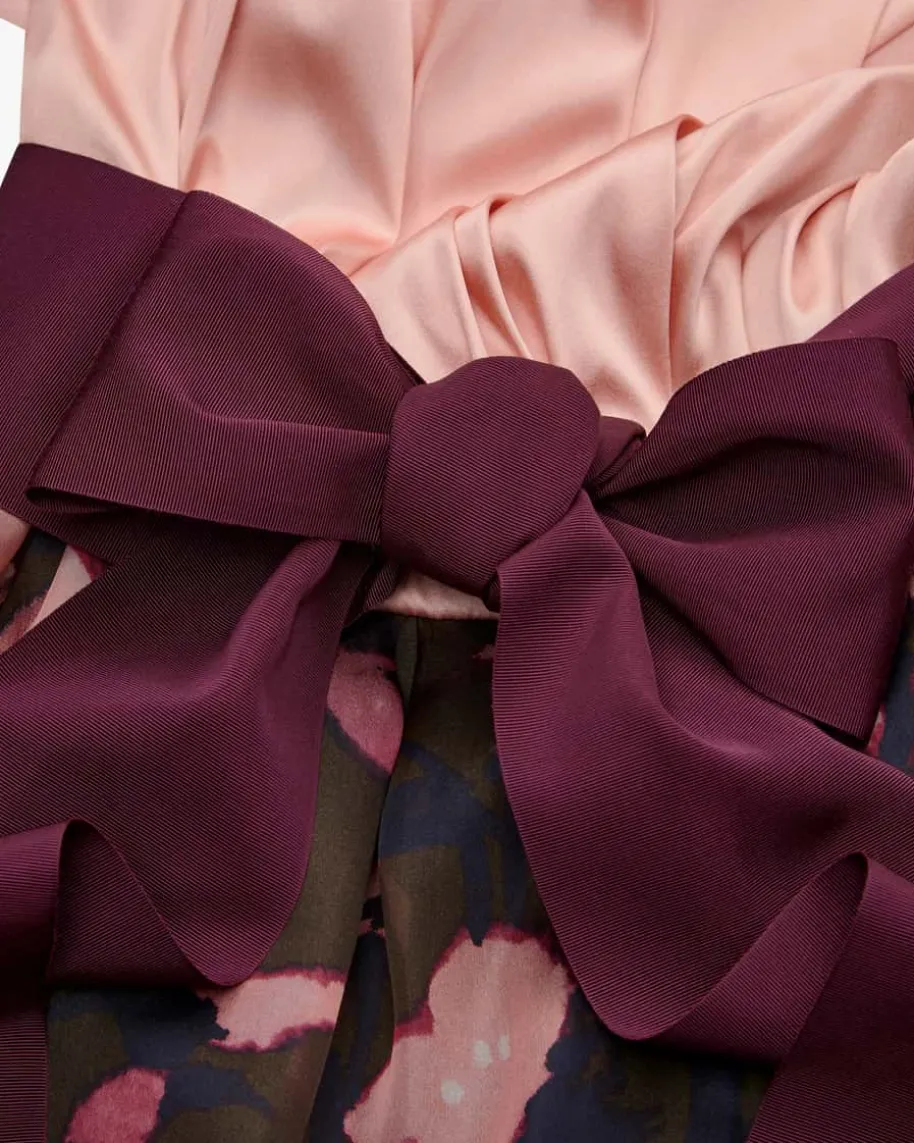 Sharetta Kleid für Damen von Sara Roka in Rosa, Bordeaux und Oliv. FeminineDesigns mit dem gewissen Etwas. Der Ursprung der Kollektionen findet sich imklassischen Herren-Hemd wieder, von dem die typischen Blusenkleider inspiriertsind. Auch dieses Modell präsentiert sich in raffinierter Material-Kombinationmit changierendem Blusen-Oberteil. Der floral gemusterte Rock und das abnehmbareTaillenband zaubern eine feminine Silhouette und runden den Look in Wickel-Optikgekonnt ab.
