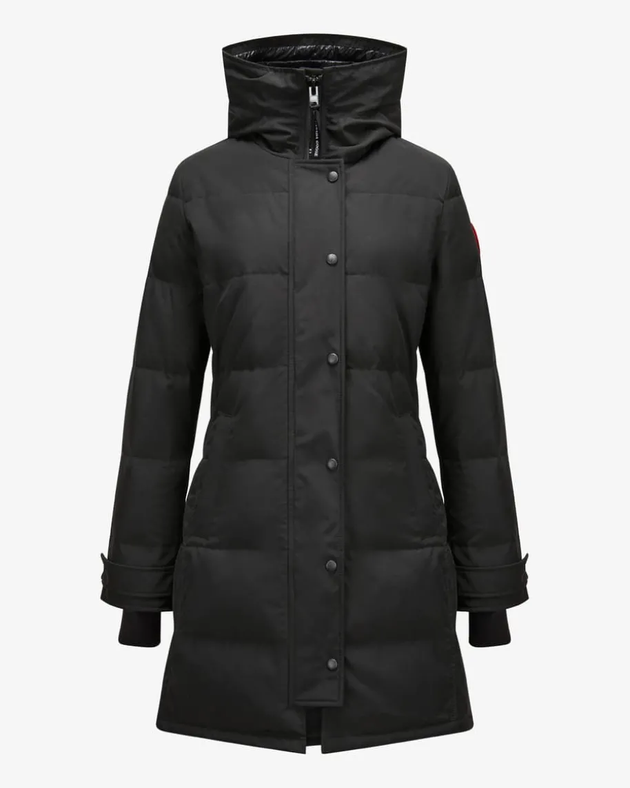 Shelburne Daunenparka für Damen von Canada Goose in Schwarz. ZweckmäßigesDesign, orientiert an den rauen Bedingungen der Arktis, ist der Grundstein füralle Kollektionen von Canada Goose. Auch dieses Modell begeistert mit derhochwertigen und wärmeisolierenden Daunen-Feder-Füllung sowie zahlreicherfunktionalen Eigenschaften, während die zeitlose Stepp-Optik einen sportivenAlltagsbegleiter schafft.