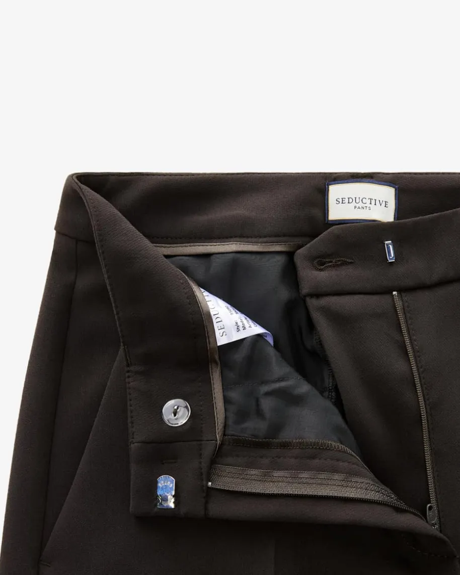 Shiloh Hose für Damen von Seductive in Dunkelbraun. Hochwertige Materialien,perfekter Sitz und feminine Schnitte – hierfür steht das Label Seductive, dasausschließlich in den Top-Manufakturen Italiens produziert. Das elegante Modellpräsentiert sich dank der weiten Passform in modisch-femininer Aufmachung,während die elastische Material-Qualität zugleich mit einer angenehmen Haptiküberzeugt.