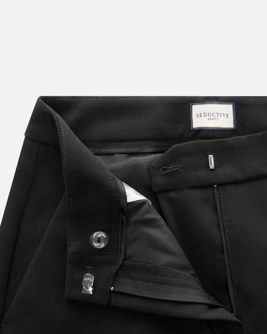 Shiloh Hose für Damen von Seductive in Schwarz. Hochwertige Materialien,perfekter Sitz und feminine Schnitte – hierfür steht das Label Seductive, dasausschließlich in den Top-Manufakturen Italiens produziert. Das elegante Modellpräsentiert sich dank der weiten Passform in modisch-femininer Aufmachung,während die elastische Material-Qualität zugleich mit einer angenehmen Haptiküberzeugt.