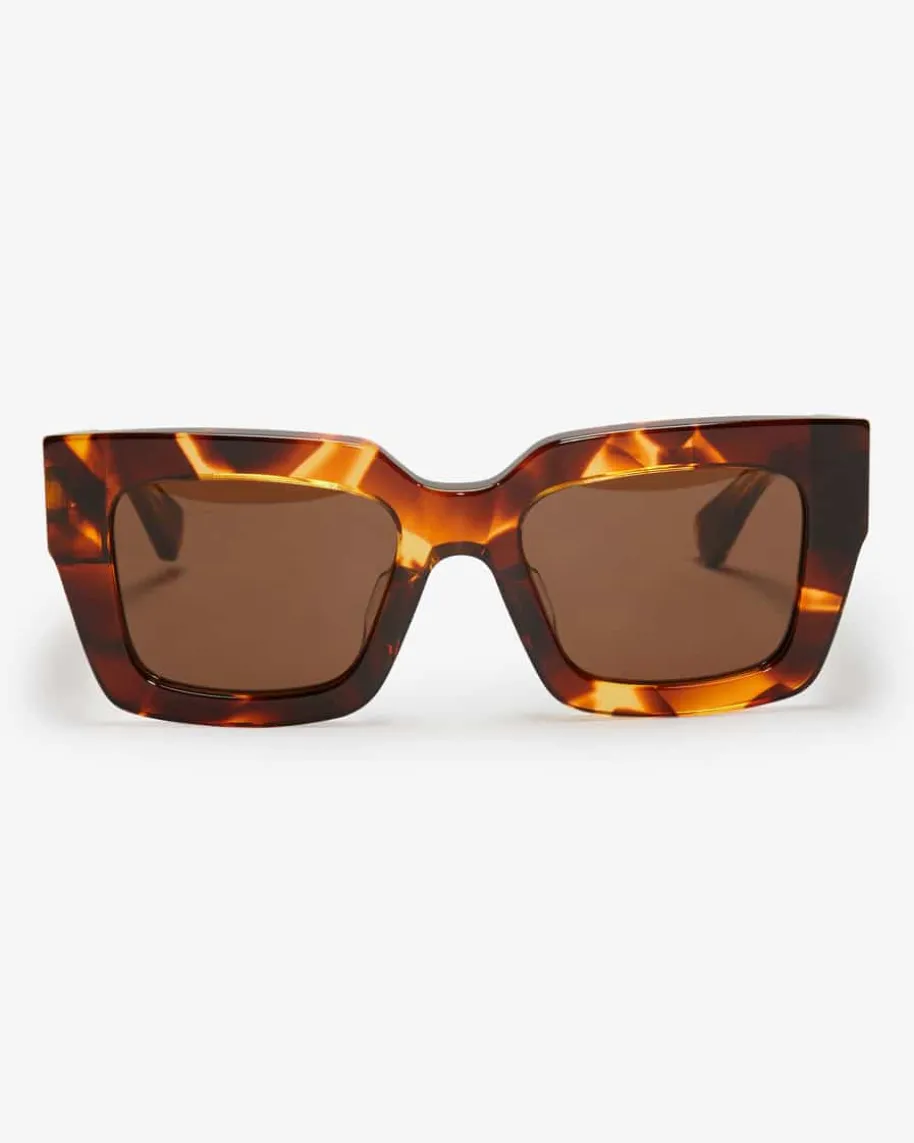 Sonnenbrille für Damen von Bottega Veneta Eyewear in Braun. Dieses Modellavanciert dank der einzigartigen Aufmachung zum stilsicheren Accessoire fürheiße Sommertage. Zugleich kreieren goldene Details am Bügel einen besonderenBlickfang.