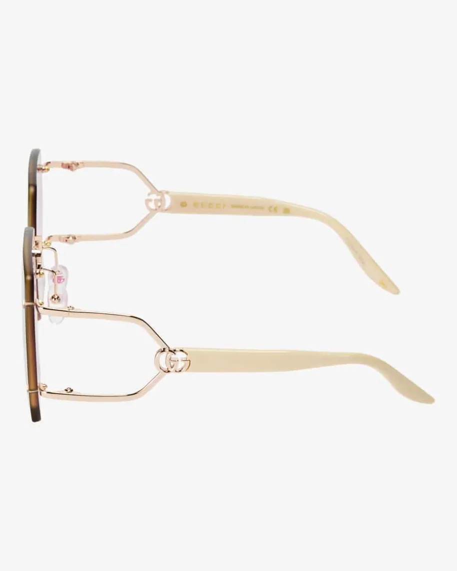 Sonnenbrille für Damen von Gucci Eyewear in Rosa und Roségold. Dankextravaganter Formgebung avanciert das extragroße, rahmenlose Modell zumperfekten Begleiter für sonnige Tage. Zugleich setzt der leichte Farbverlauf inden Gläsern besondere Akzente.