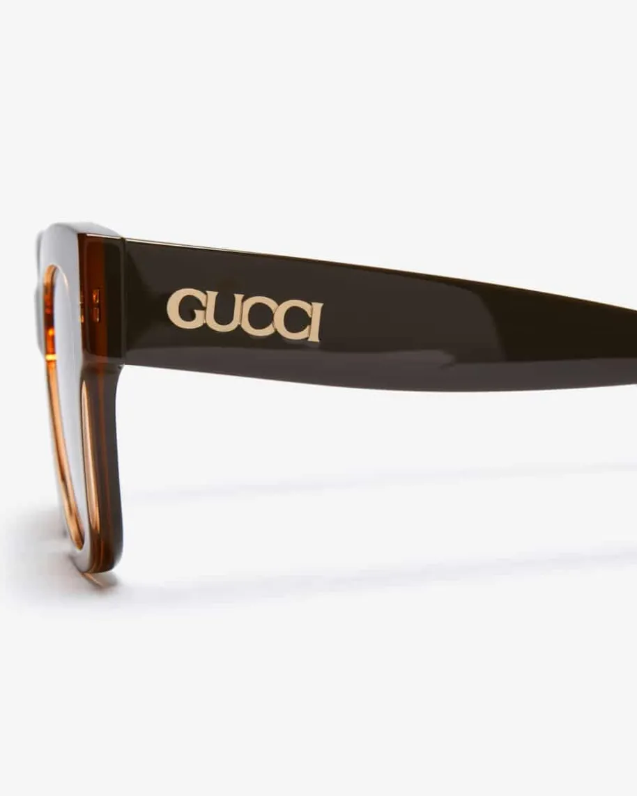 Sonnenbrille für Damen von Gucci Eyewear in Braun. Dieses Modell in Horn-Optikavanciert dank der einzigartigen Aufmachung zum stilsicheren Accessoire fürheiße Sommertage. Zugleich kreieren goldene Logo-Details am Bügel einenbesonderen Blickfang.