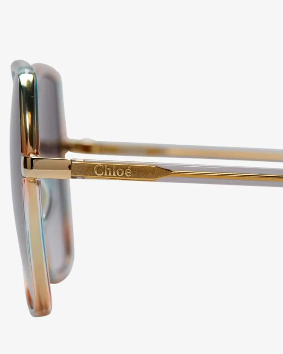 Sonnenbrille für Damen von Chloé Eyewear in Anthrazit, Blaugrau und Rosa. DasModell präsentiert sich mit extravaganten Gläsern und schafft somit einmodisches IT-Piece das nach Sonne ruft. Die goldfarbenen Details runden dasGesamtbild gekonnt ab.
