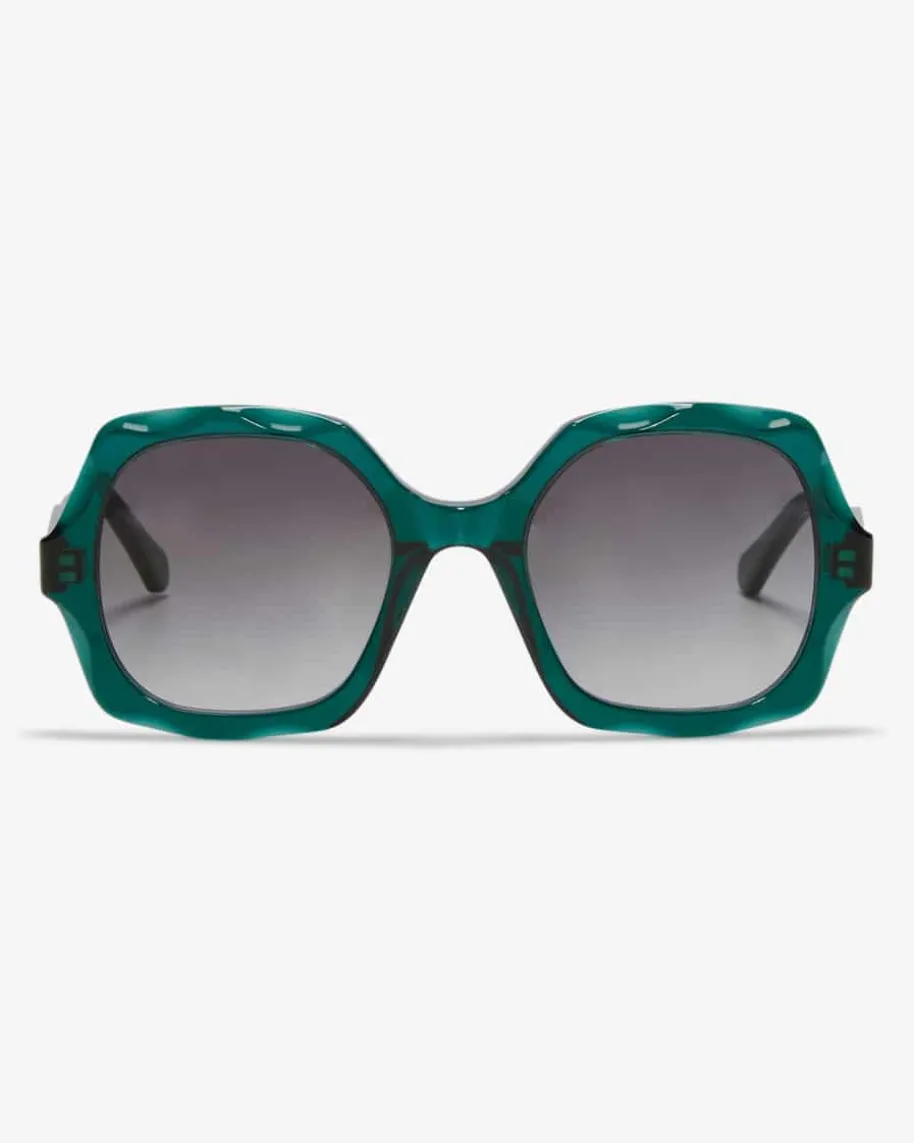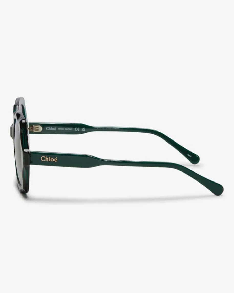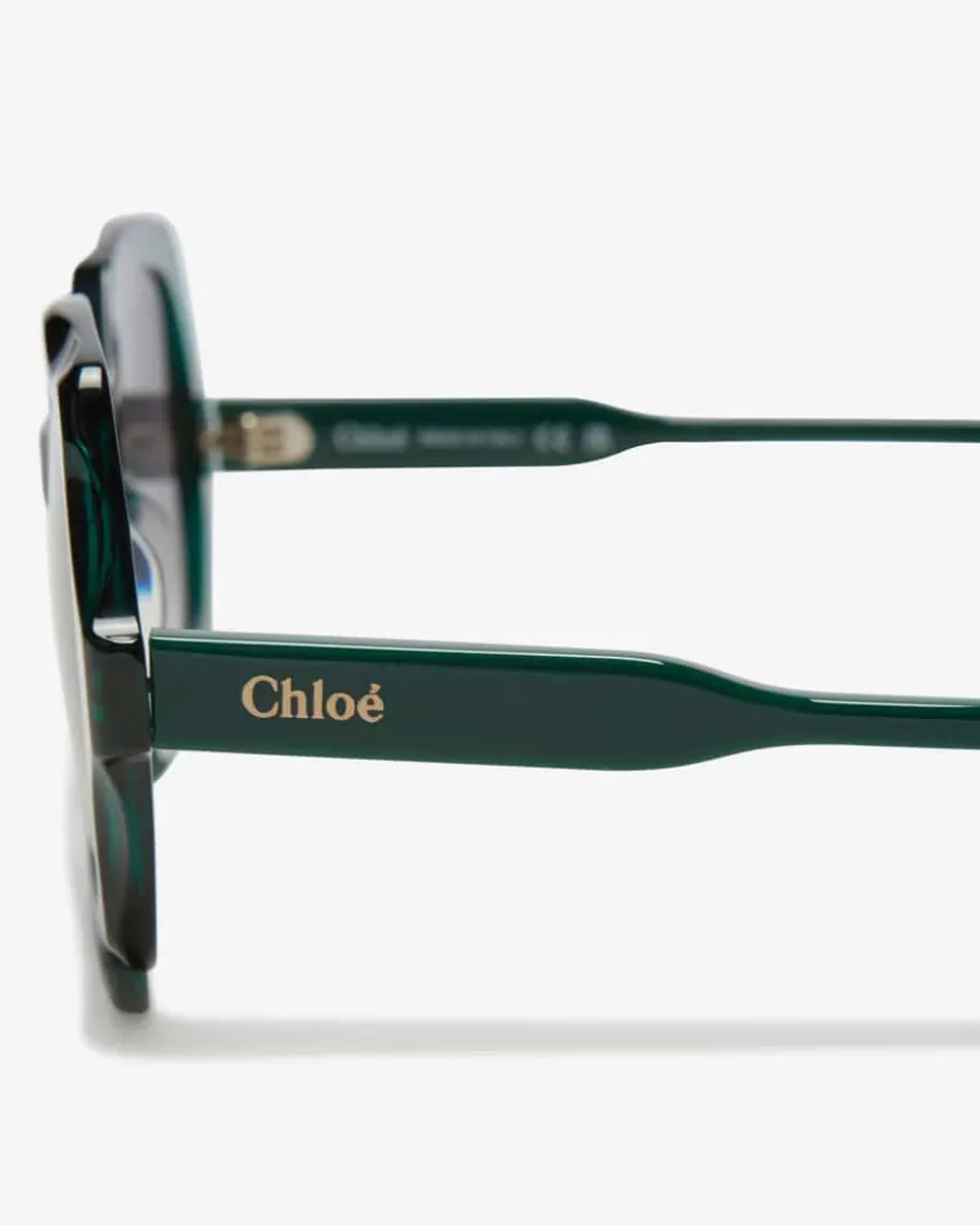 Sonnenbrille für Damen von Chloé Eyewear in Petrol und Grau. Dieses Modellavanciert dank der markanten Gläser mit semitransparentem Rahmen im Wellen-Design zum stilsicheren Accessoire für sonnige Tage.