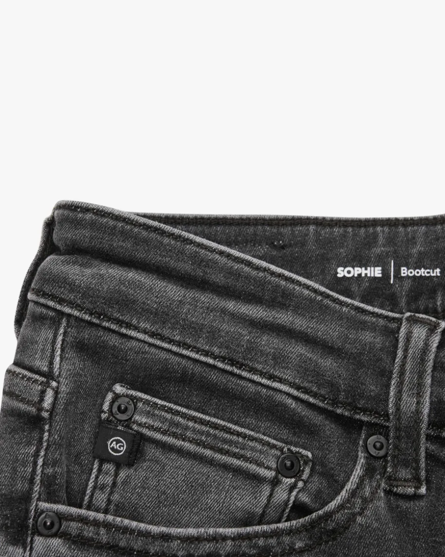 Sophie Jeans Bootcut für Damen von AG Jeans in Dunkelgrau. Das Modellpräsentiert sich mit elastischer Denim-Qualität, die für hohen Tragekomfortsorgt, während die schmale Bootcut-Silhouette mit ausgestelltem Bein dem Styleeine modische Note verleiht.