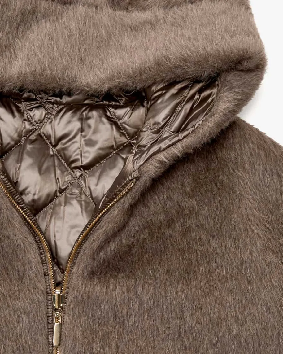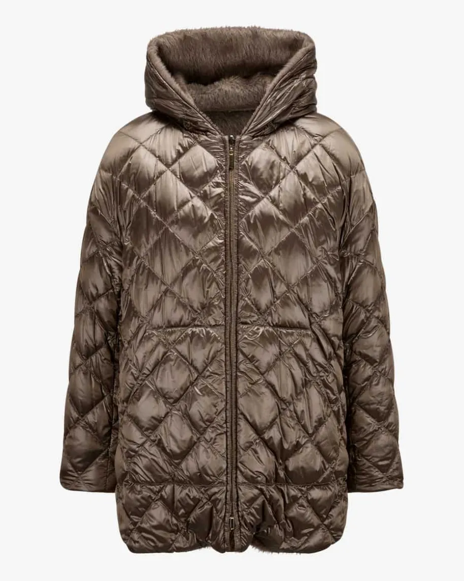 Spacefe Wende-Daunenjacke für Damen von Max Mara The Cube in Hellbraun. DasSortiment von Max Mara Cube ist vielfältig und umfasst Damenoberbekleidung fürjede Gelegenheit, die stilistisch seinen Wurzeln treu bleibt. Das weitgeschnittene Kapuzen-Modell präsentiert sich dank der praktischen Wende-Funktionim individuellen 2-in-1-Look. Während die Alpakawoll-Mix-Seite mit weichem Griffund einer stilvollen Optik punktet, sorgt die changierende Daunen-Seite mitRautensteppmuster für eine leichte Wärmeisolierung.