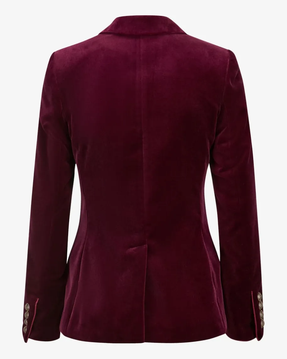 St. Gallen Samt-Trachtenjacke für Damen von LODENFREY München 1842 in Bordeaux.Das Modell in weicher Samt-Qualität präsentiert sich in stilvoller Aufmachung,während traditionelle Details wie die Wappenknöpfe sowie die feminine Passformeinen modernen Trachten-Begleiter kreieren.