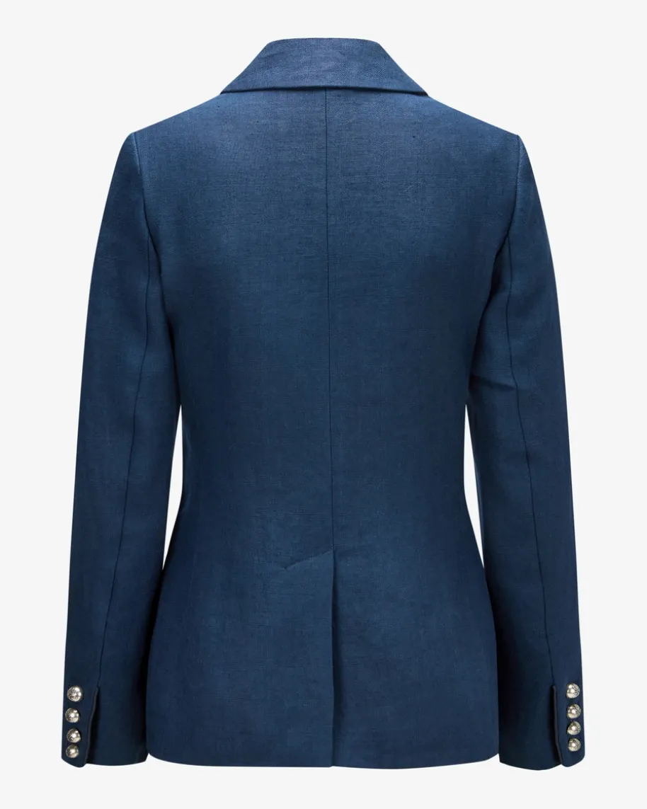 St. Gallen Trachten-Leinenblazer für Damen von LODENFREY München 1842 inDunkelblau. Tradition und Moderne in perfektem Zusammenspiel – Das taillierteModell aus reiner Leinen-Qualität präsentiert sich in fein strukturierter Haptikund hochwertiger Optik, während die silberfarbenen Kugelknöpfe sowie die tonigenPaspelierungen einen feminin-traditionellen Begleiter schaffen.