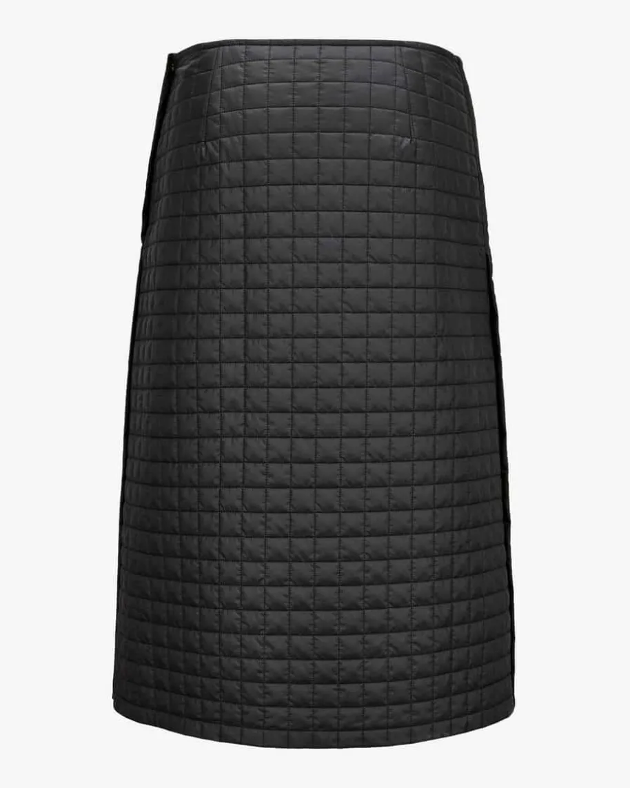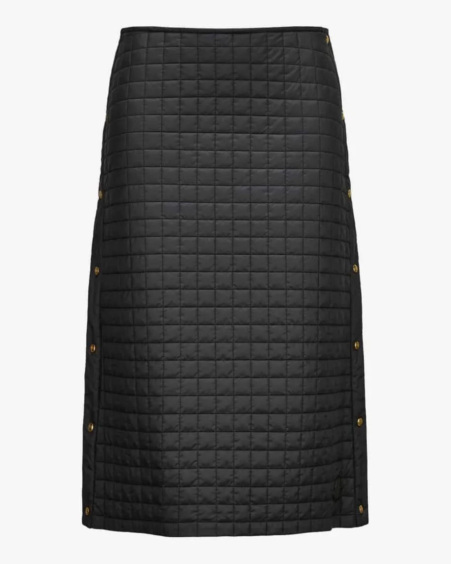 Stepprock für Damen von Moncler in Schwarz. Das Modell begeistert dank derleicht wattierten Stepp-Aufmachung mit modernen Mountain-Vibes und sportiverOutdoor-Ästhetik, während die schmale Passform mit seitlichen Druckknopfleistendas Gesamtbild feminin unterstreicht.